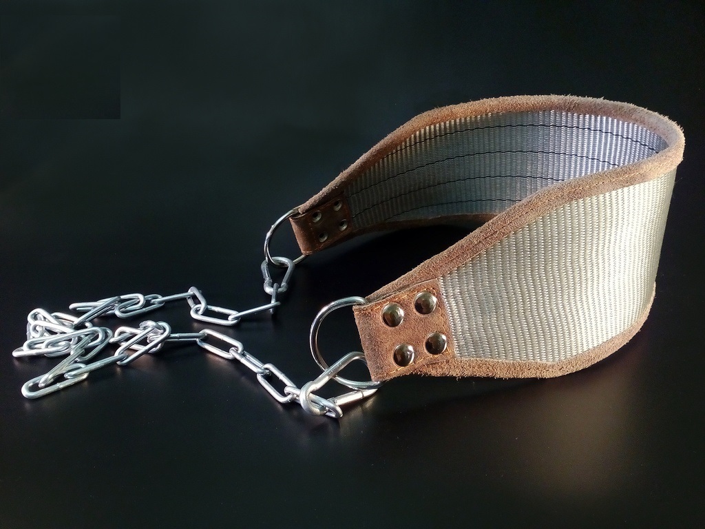 Пояс для отягощений Профи — 3 изготовлен из высокопрочного капрона. Окантовка кожей по периметру предотвращает скольжение. Широкая спинка 12 см позволяет равномерно распределить нагрузку и обеспечивает максимальный комфорт. Длина цепи может быть изменена по Вашим пожеланиям.