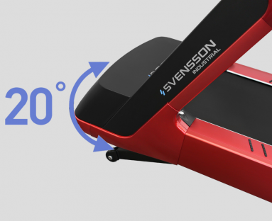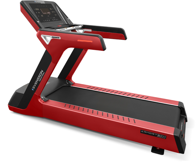 Технические характеристики Svensson Industrial Armortech полностью соответствуют самым тяжелым режимам эксплуатации в формате 24×7. Двигатель японской Fuji выдает мощность 5.5 л.с. переменного тока (AC) в режиме постоянной эксплуатации и 8.6 л.с. в пиковой. Максимальная скорость движения составляет 23 км/ч, угол наклона — до 20%. Размер бегового полотна максимальный в классе: длина беговой зоны 165 см и ширина — 60 см. Новейшая амортизационная платформа buffer-Run построена на 4 пружинных группах и 2 эластомерах VCS . Такая технология обладает великолепными демпфирующими свойствами и оказывает минимальную ударную нагрузку на колени, стопы и позвоночник. Максимальный вес пользователя для этой дорожки составляет 220 кг.