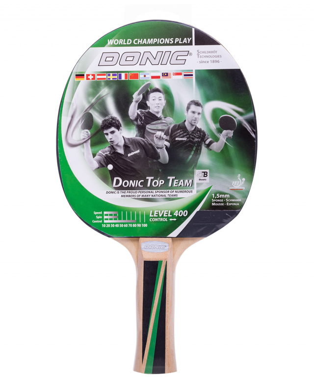 Ракетка Top Team 400 от всемирно известного немецкого бренда Donic-Schildkröt прекрасно подходит начинающим игрокам, которым требуется овладеть базовой техникой игры. Рукоятка анатомической формы удобно располагается в руке, не доставляю дискомфорта.