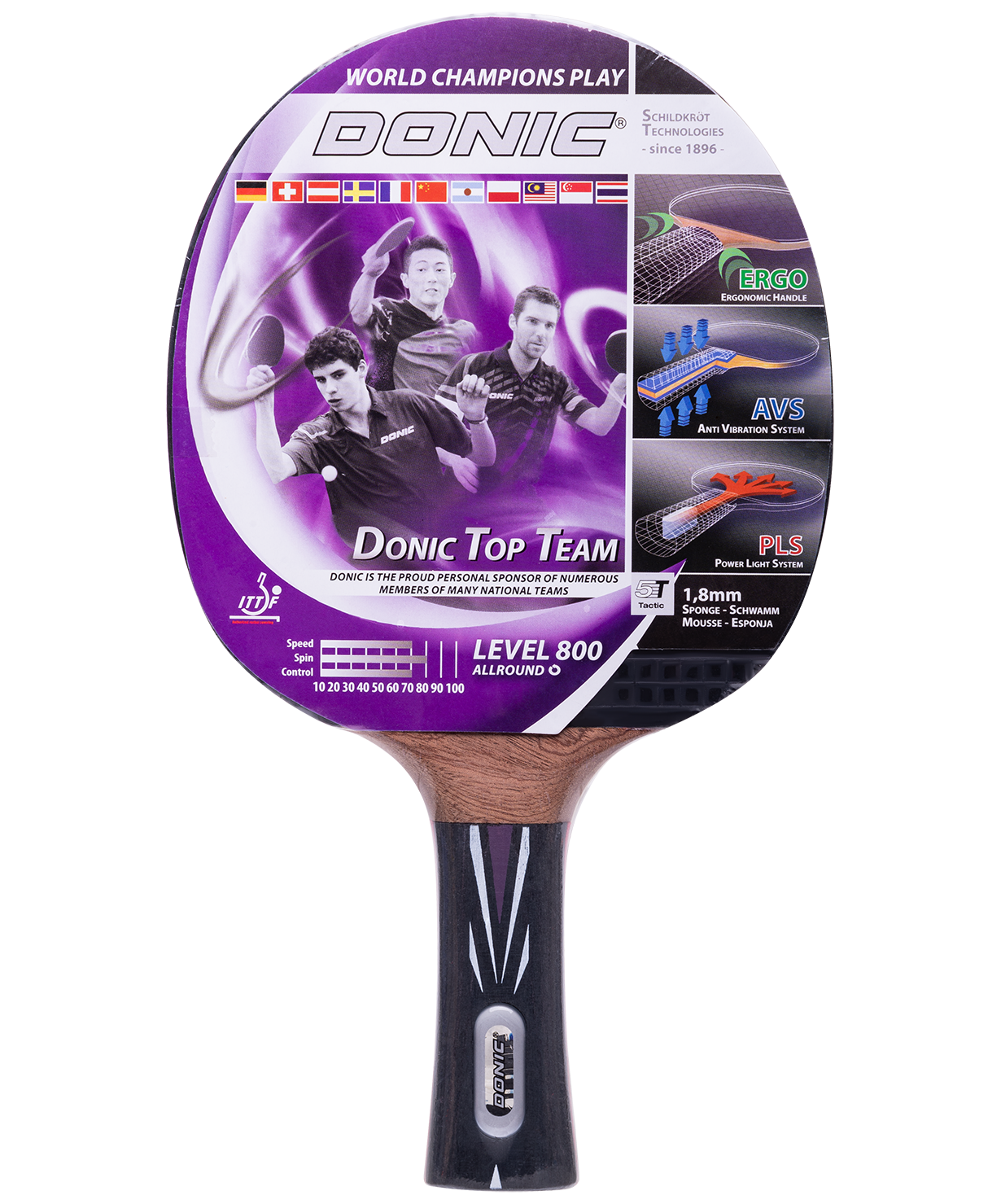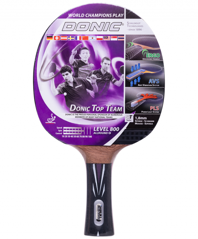 Ракетка Top Team 800 от всемирно известного немецкого бренда Donic-Schildkröt прекрасно подходит для продвинутых игроков. Эргономическая форма рукоятки позволяет избежать давления в руке для максимального комфорта в игре. Благодаря технологии AVS (Anti-Vibration-System) достигается улучшенный контроль мяча и снижение вибраций, вызванных ударом мяча, в результате чего повышается точность попаданий. PLS-технология помогает добиться максимальной скорости игры за счет снижения веса рукоятки и смещения центра тяжести к центру головы ракетки.