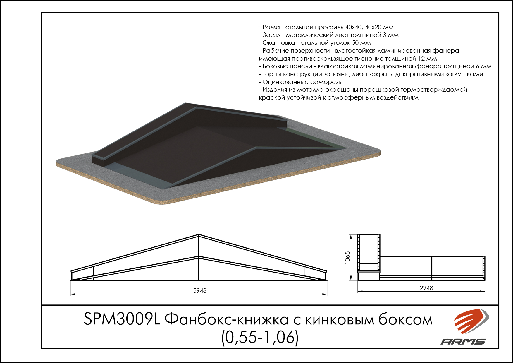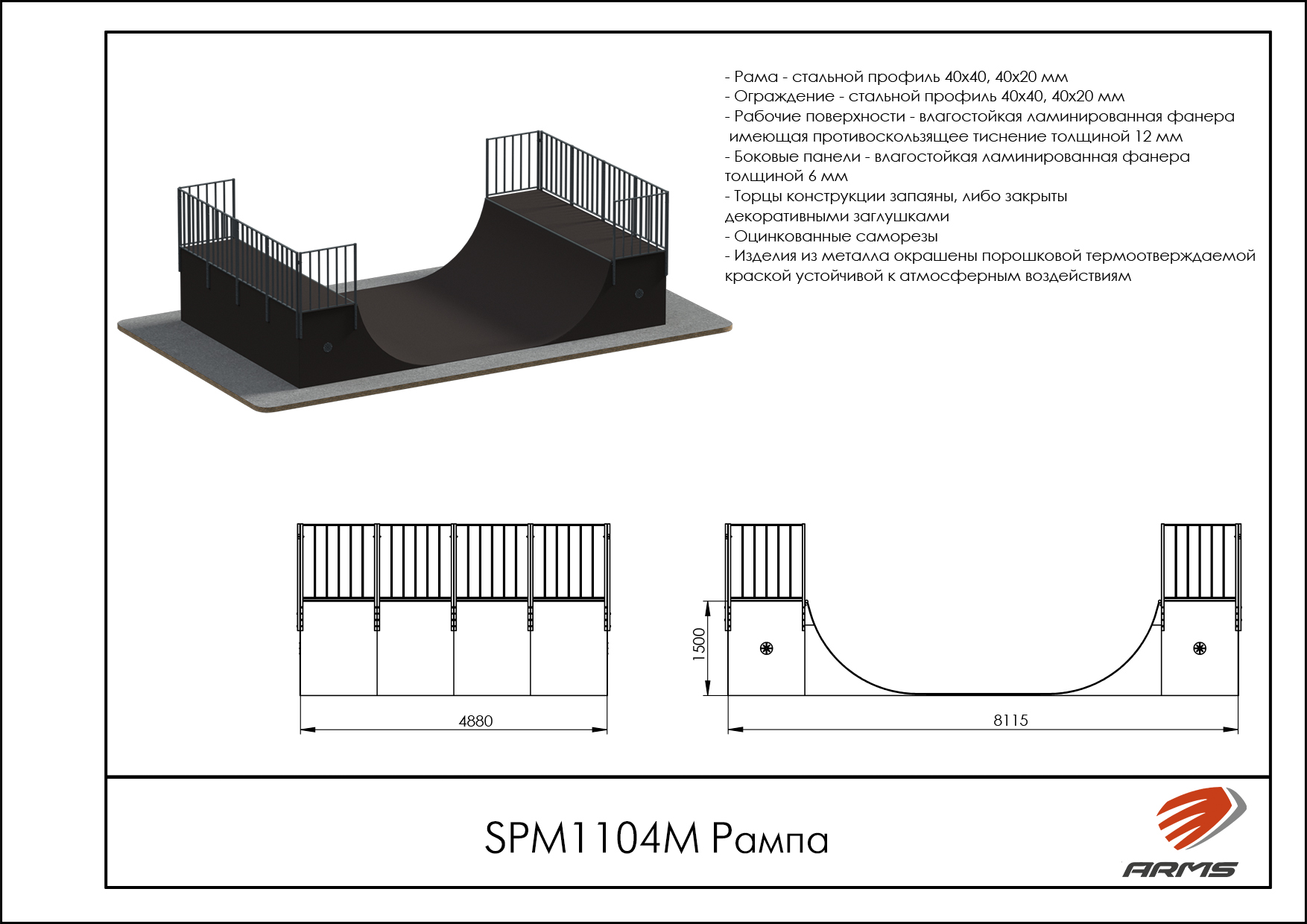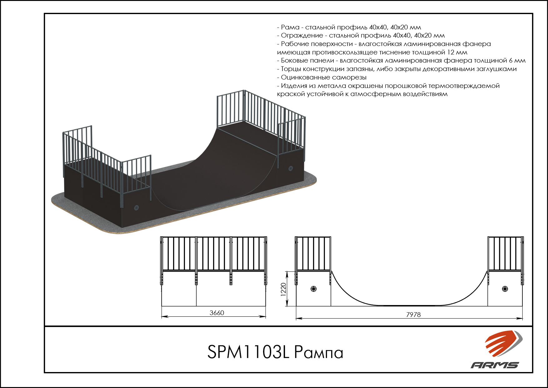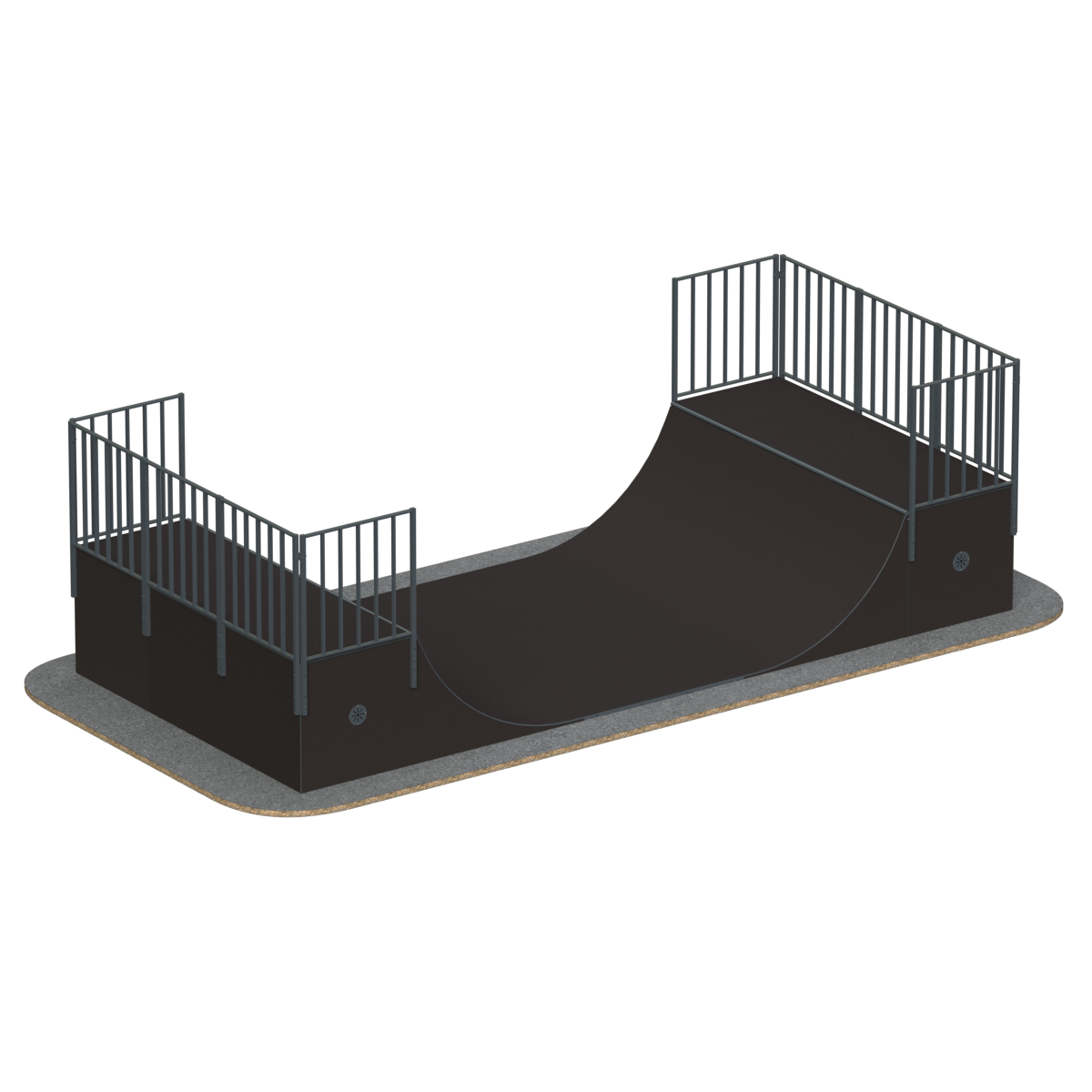 Рампа, по-другому Халф-пайп, представляет собой фигуру из двух радиусов, повернутых друг к другу.