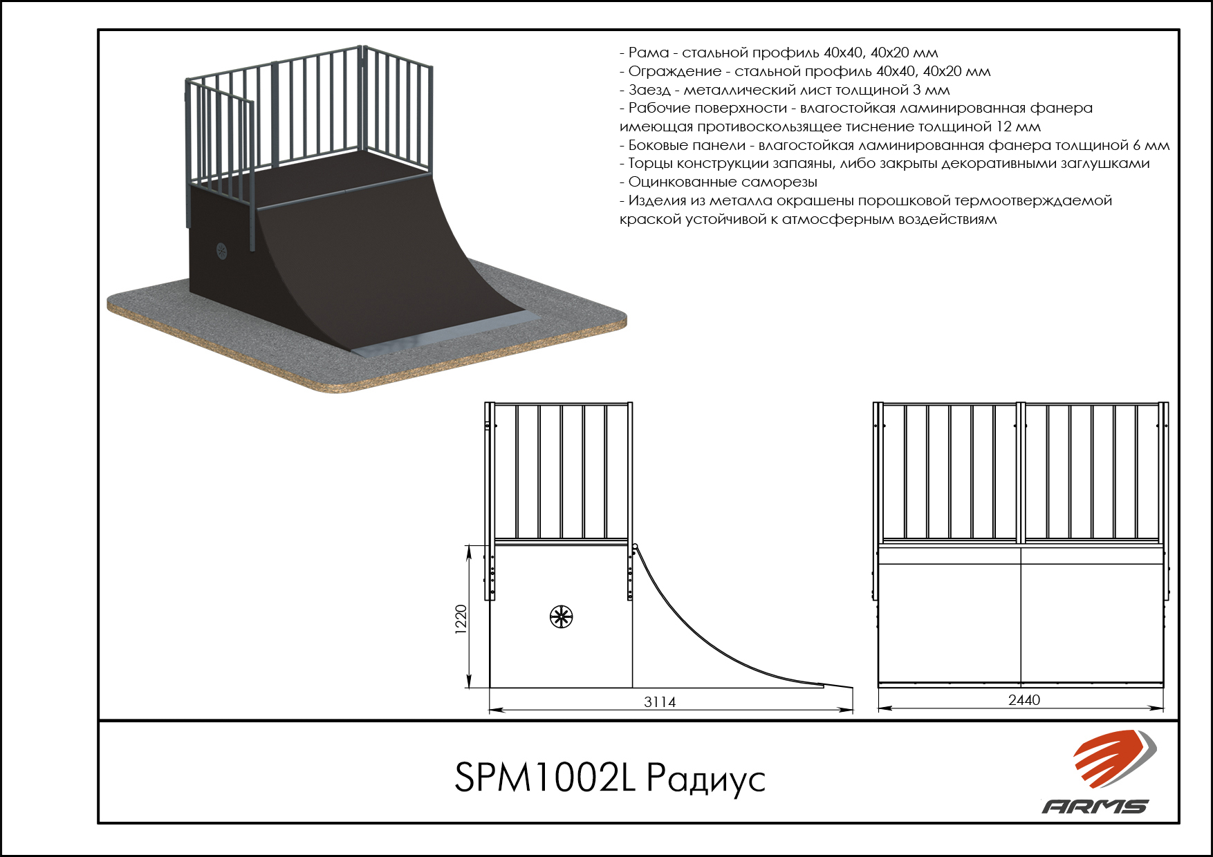 Рампа, по-другому Халф-пайп, представляет собой фигуру из двух радиусов, повернутых друг к другу.