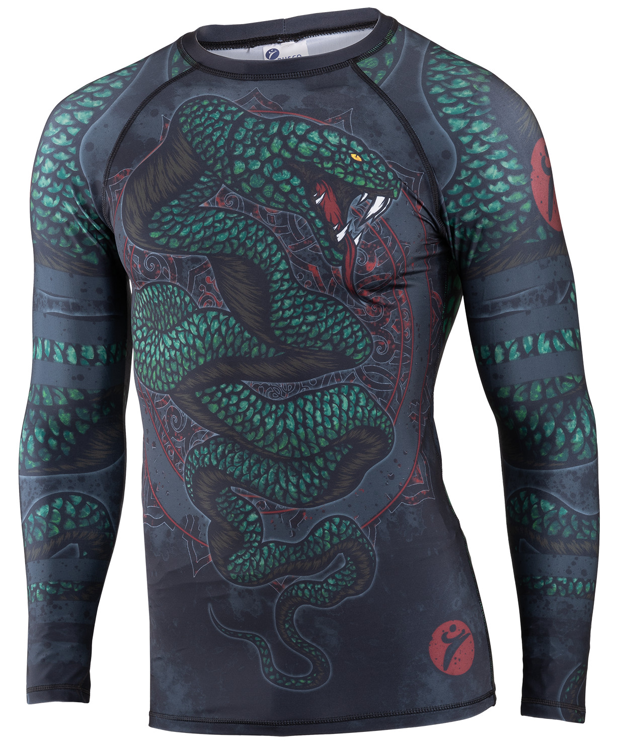 Комфортная модель рашгарда для занятий ММА и другими видами единоборств. Плотно обтягивает тело. Легкая ткань не ощущается на теле, удерживает тепло, отводит пот и защищает спортсмена от загрязнений при падении на мат. Специальные плоские швы не раздражают кожу спортсмена. Рисунок сублимирован в ткань, что гарантирует его сохранность после стирки.