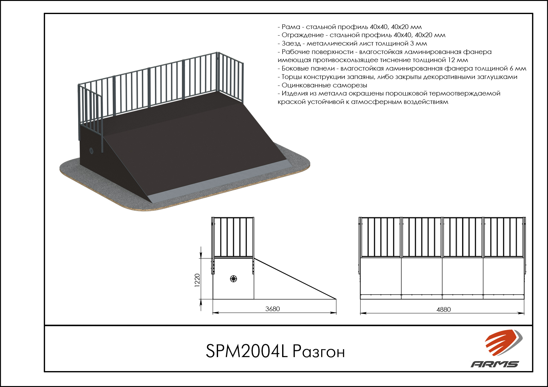 Представляет собой фигуру из горизонтальной площадки с ограждением и разгонку с плоским углом наклона для набора и сохранения скорости движения.