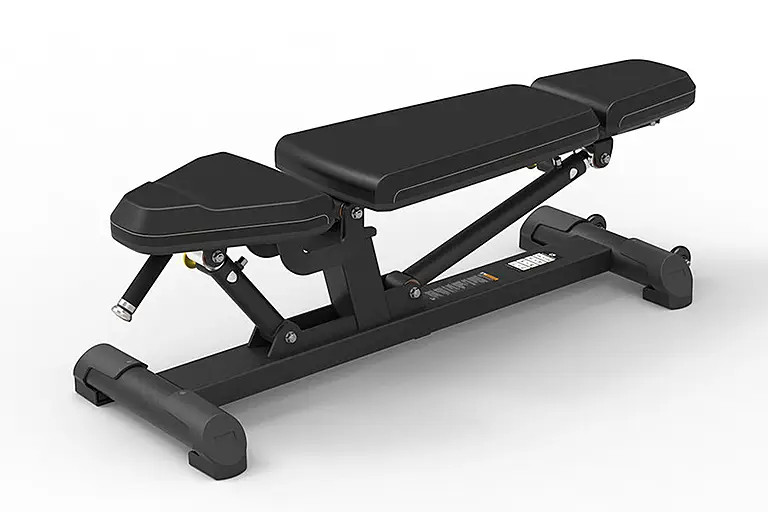 Регулируемая скамья от Spirit имеет четыре точки опоры, что гарантирует устойчивость и стабильность всей конструкции.