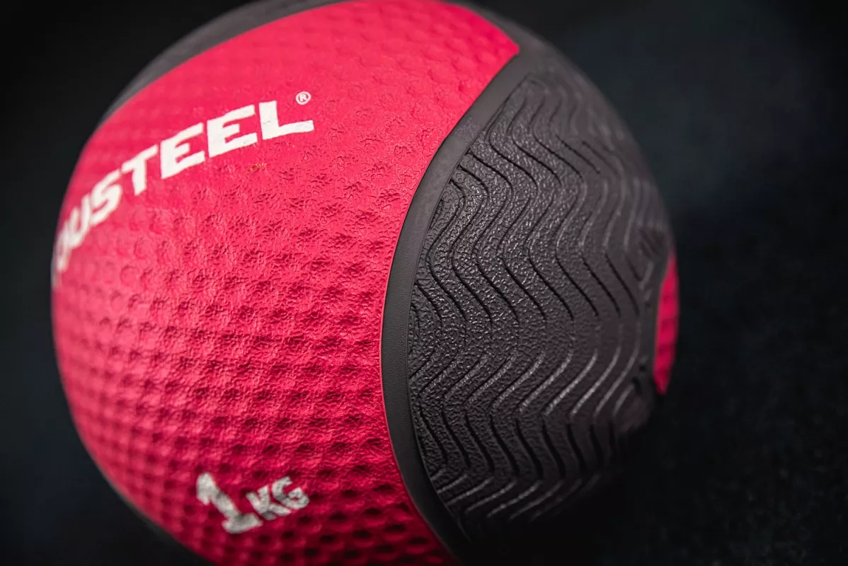 Тренировочный мяч имеет жесткую оболочку и выполнен из каучука. Поверхность мяча имеет специальный протекторный рисунок, который позволяет комфортно удерживать мяч даже если ваши ладони сильно вспотели. Для простоты ориентации каждый снаряд имеет цифровое обозначение веса и цветную вставку. Занимающимся следует быть аккуратными, т.к. мяч имеет высокую степень отскока при ударах о поверхности.