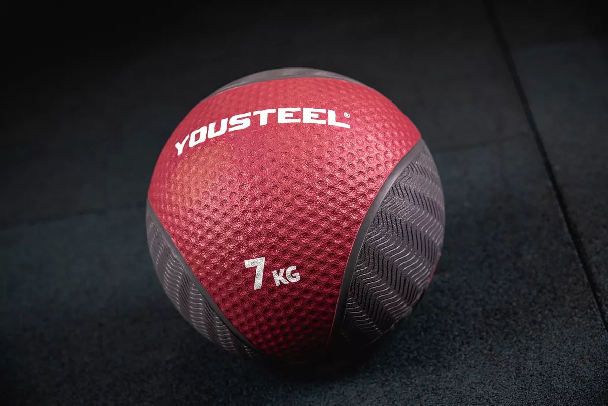 Тренировочный мяч имеет жесткую оболочку и выполнен из каучука. Поверхность мяча имеет специальный протекторный рисунок, который позволяет комфортно удерживать мяч даже если ваши ладони сильно вспотели. Для простоты ориентации каждый снаряд имеет цифровое обозначение веса и цветную вставку. Занимающимся следует быть аккуратными, т.к. мяч имеет высокую степень отскока при ударах о поверхности.