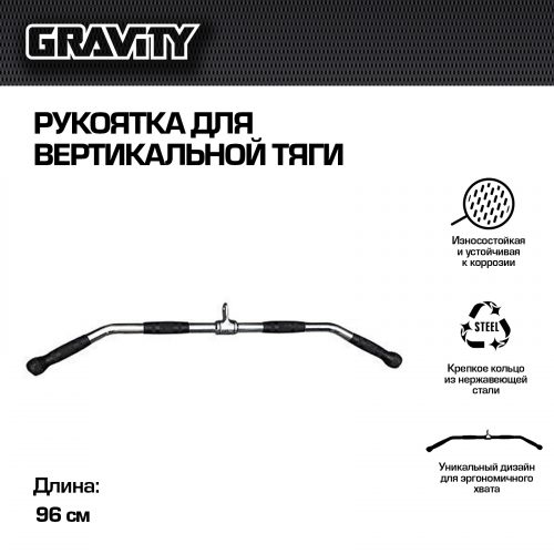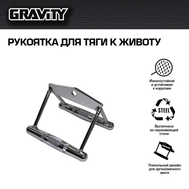 Рукоятка для тяги Gravity — это надежный и удобный инструмент, который поможет вам достичь максимальных результатов в тренировках. Эта рукоятка предназначена для тяги узким параллельным хватом и имеет вес 2 кг. Она идеально подходит для использования на силовых стойках, силовых рамах и кроссоверах. Цвет рукоятки — серебристый, что делает ее стильным дополнением к вашему оборудованию. Рукоятка выполнена из качественных материалов, которые гарантируют прочность и долговечность использования.
