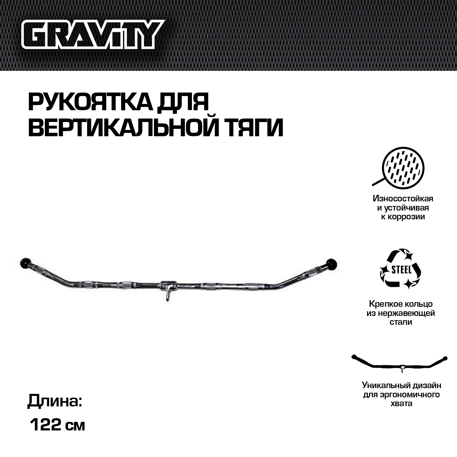 Представляем вам рукоятки для вертикальной тяги от известного бренда Gravity. Эти рукоятки имеют длину от 91 до 122 сантиметров, что позволяет использовать их как для силовых стоек, так и для силовых рам.
