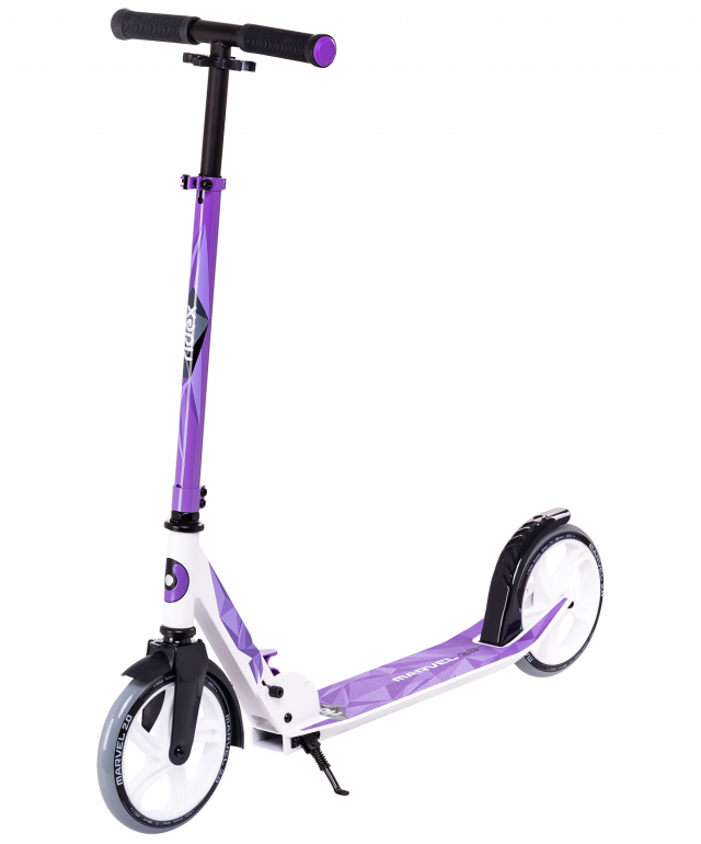 Заниженная дека самоката позволяет комфортно передвигаться по городу, отталкиваясь только носком стопы. Легкий и одновременно прочный самокат идет в комплекте с ремнем для переноски в сложенном состоянии.