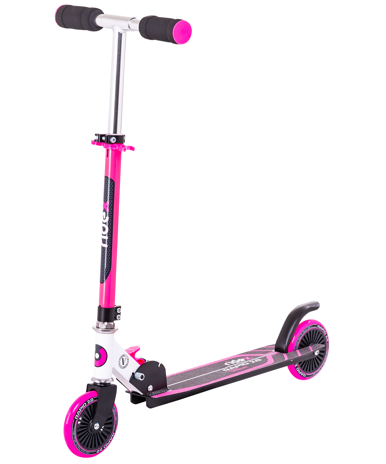 Корпус из стали и алюминия добавляет самокату надёжности, а рулевые грипсы из высококачественного и мягкого неопрена обеспечивают надёжный контроль при катании. Шкурка увеличивает цепкости с декой и манёвренность самоката, что способствует безопасности во время езды. Удобный складной механизм позволит легко перемещать самокат там, где нет возможности проехать.