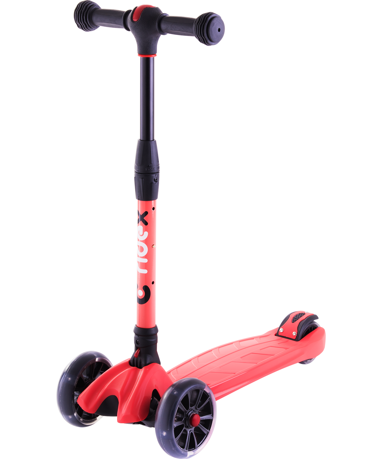 Самокат с инновационной системой 2-уровневой регулировки высоты руля: вместо классического бокового рычага — пластиковая боковая фиксация. Она препятствует случайному попаданию одежды в конструкцию, повышая безопасность катания. Компактная система складывания нажатием на кнопку. Передние LED-колеса увеличенного радиуса для более быстрого катания. Усиленная дека выдерживает до 70 кг нагрузки.