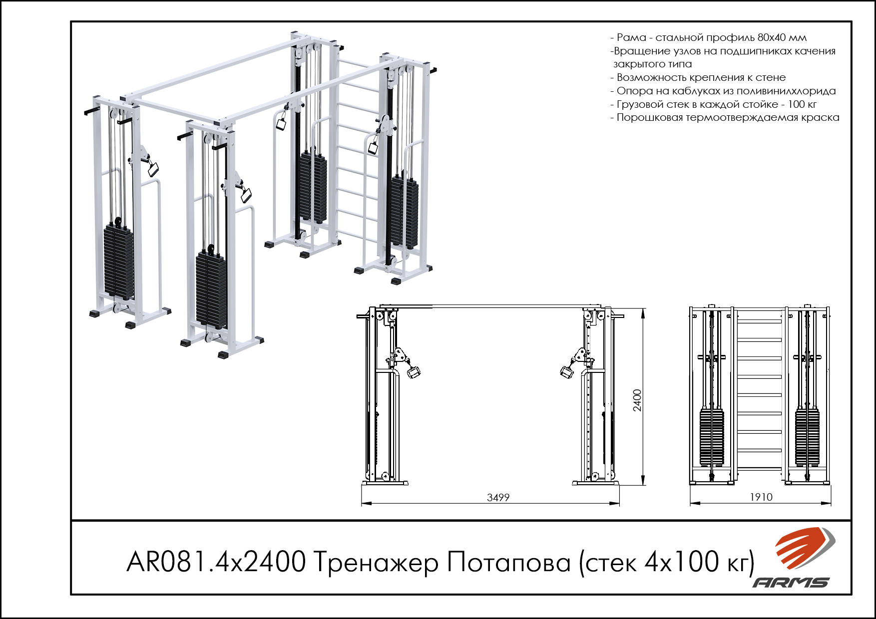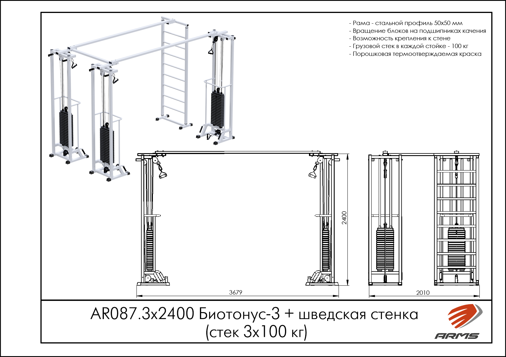 Биотонус-3+шведская стенка (стек 3х100кг)