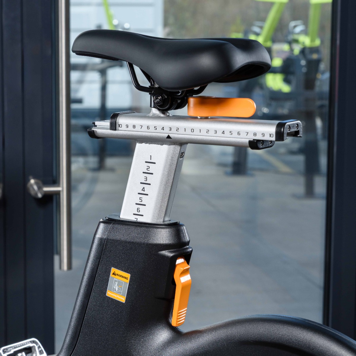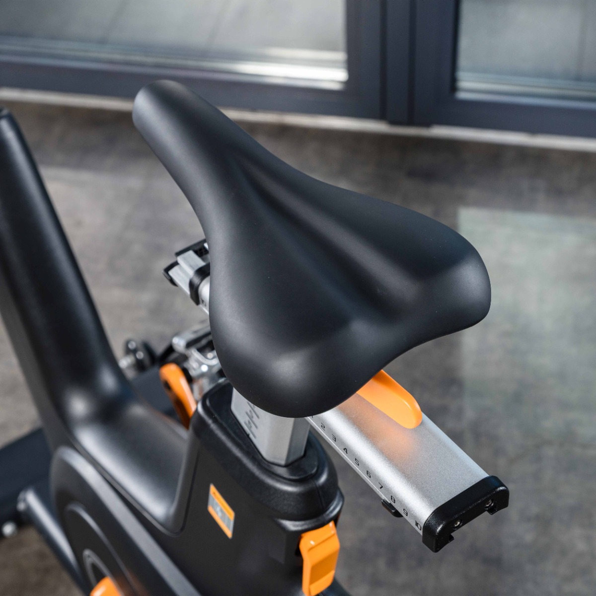 Седло анатомическое велосипедного типа обеспечивает жёсткую посадку, вырез по центру не препятствует нормальному кровоснабжению и пропускает воздух. Регулируется по горизонтали на 220 мм (в обе стороны) и по вертикали в 20 положениях, вылет до 300 мм, шаг 15 мм.