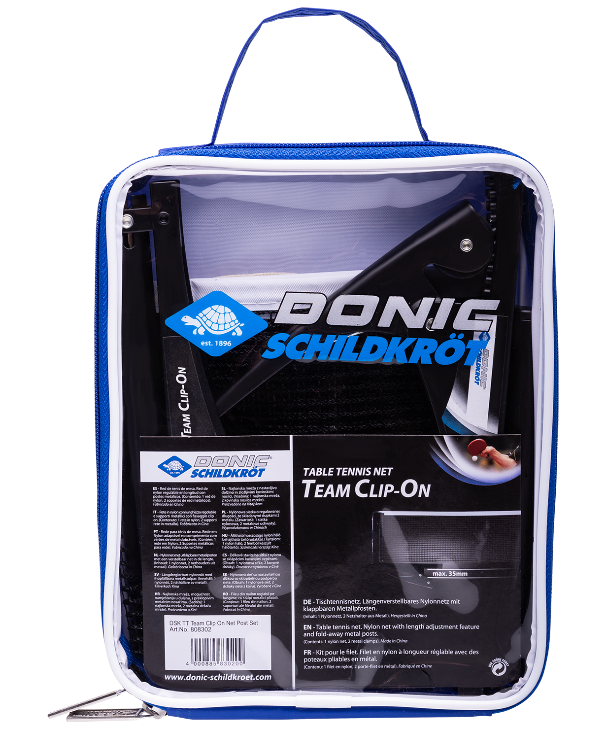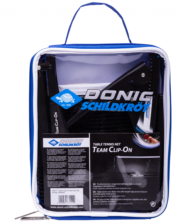 Нейлоновая сетка Team Clip On с креплением клипса от всемирно известного немецкого бренда Donic-Schildkröt прекрасно подходит для игры на открытом воздухе и в помещении. Крепление клипса позволит быстро установить сетку на столе. Сетка регулируется по длине. Максимальная толщина панели стола — 3,5 см.