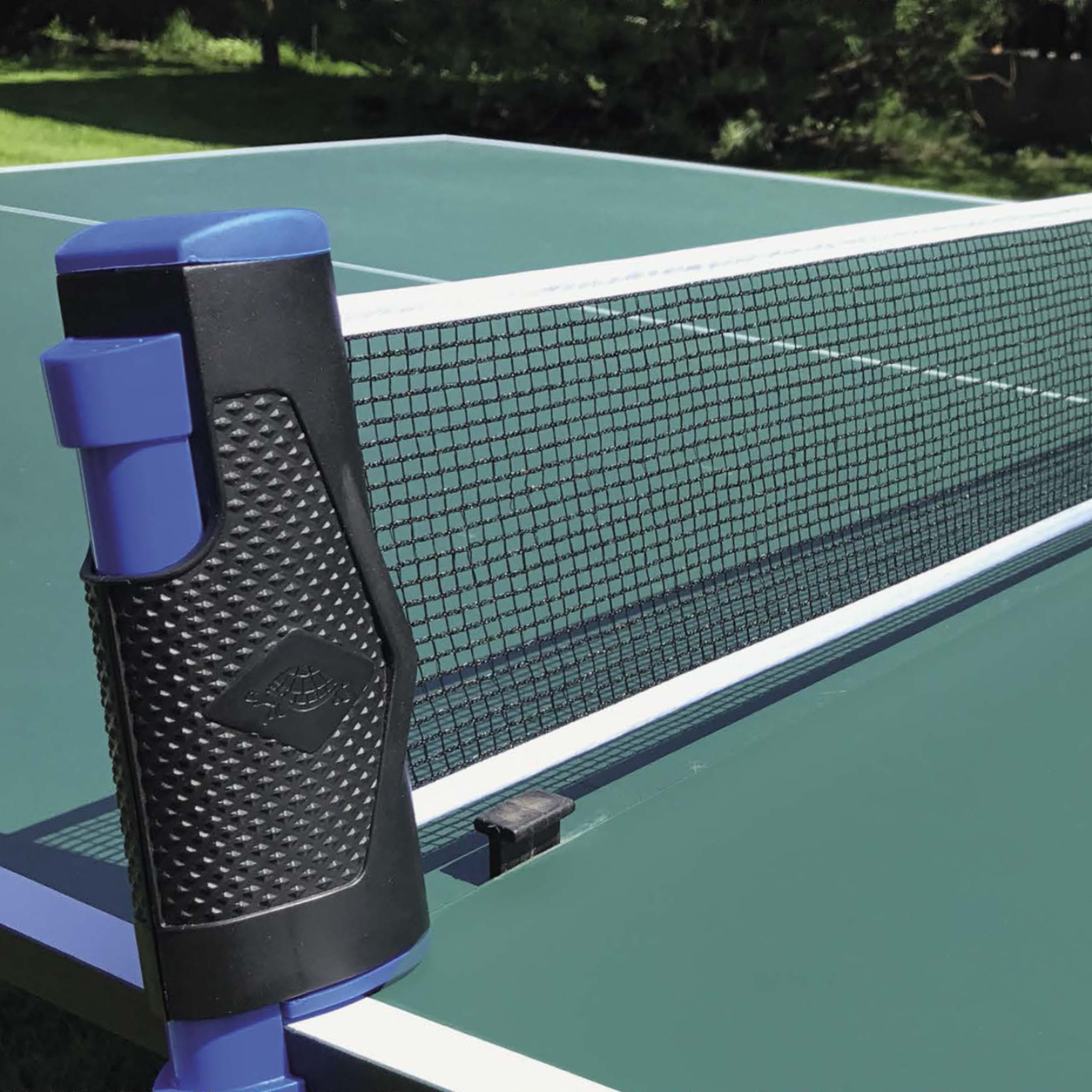 Самозатягивающаяся нейлоновая сетка с механизмом сматывания для настольного тенниса Schildkrot FLEX-NET. Подходит для игры на открытом воздухе и в помещении. Материал изготовления — нейлон чёрного цвета, максимальная длина 175 мм, а толщина столешницы до 4 см. Держатель сетки FLEX-NET в комплекте.