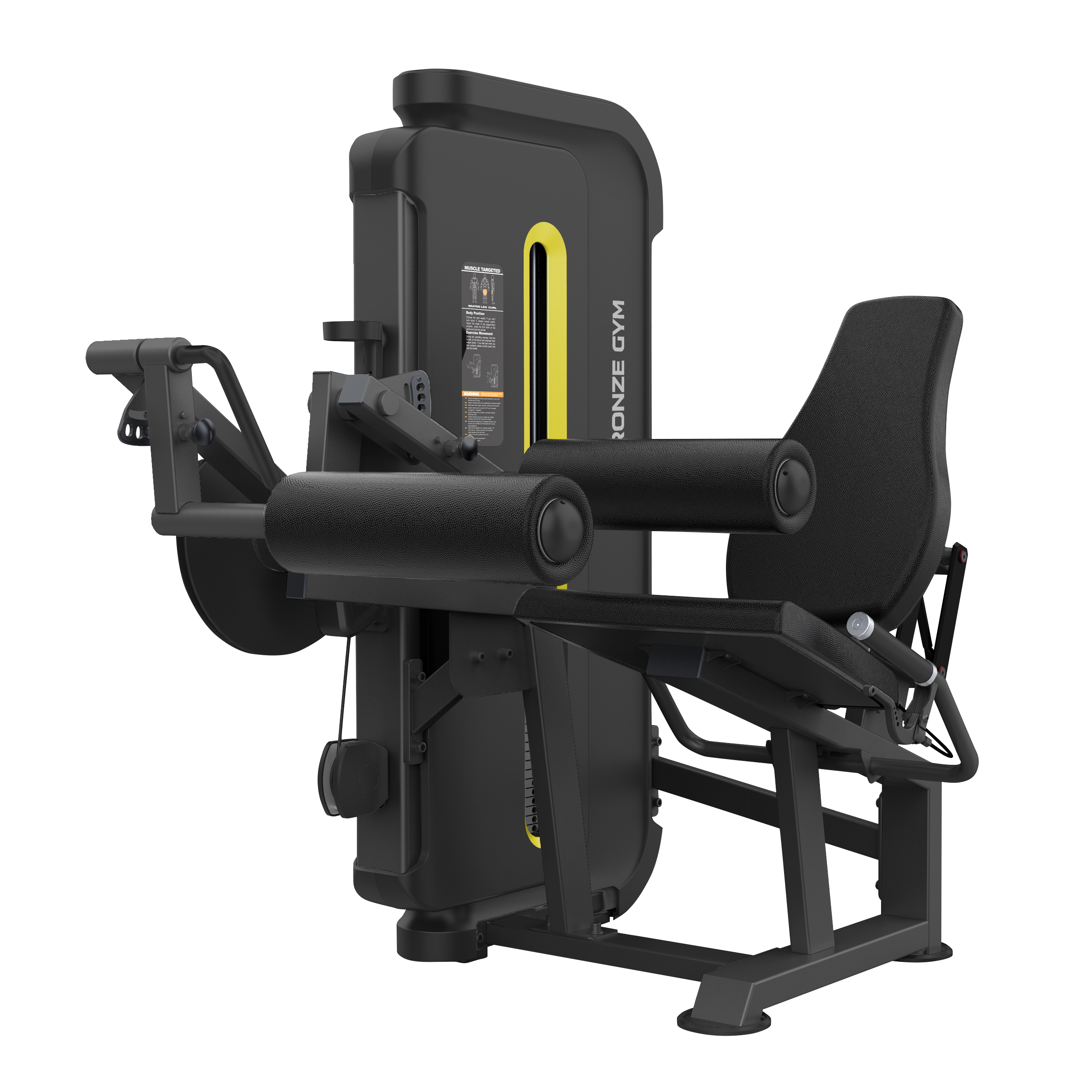 BRONZE GYM BW-3023 — это профессиональный тренажер коммерческого класса для выполнения упражнения сгибания ног сидя. Благодаря данной модели, пользователь сможет проработать мышцы задней поверхности бедра. Рама BW-3023 с внушительными размерами 100*50 толщиной 2.5 мм и порошковой окраской в два слоя, выражает силу с первого взгляда. Прорезиненные, нескользящие рукоятки оборудования обеспечивают надежное сцепление рук пользователя во время занятий, что избавит от риска получения травм. Стальной трос в ПВХ оболочке общим диаметром 6 мм отвечает за подъем грузов. Между прочим, это один из самых высоких показателей в классе. Весовые плиты изготовлены из прочной легированной стали. Общий вес стека составляет 110 кг. Для простоты использования, все фиксаторы на тренажере выполнены в ярких цветах.* Это очень важная деталь, особенно для слабовидящих пользователей. Установленное на модели эргономичное сиденье из искусственной кожи гарантирует повышенный комфорт пользователя на протяжении всех подходов при выполнении упражнения. Мягкость обеспечивают подушки с полиуретановым наполнителем. В качестве дополнения BRONZE GYM BW-3023 оснащен держателем для бутылочки с водой и полотенца.