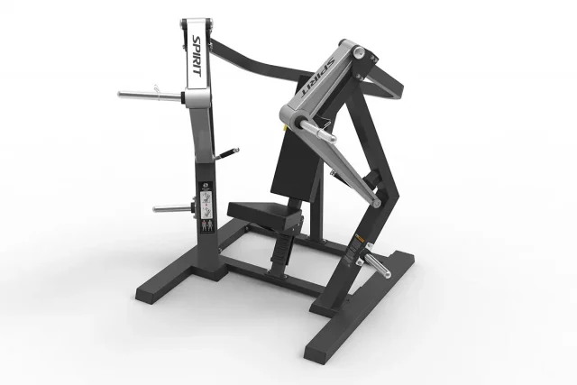 Широкий жим от груди от Spirit имеет сверхпрочную конструкцию весом 209 кг — надежный тренажер для спортивных клубов, фитнесс залов и т.д.