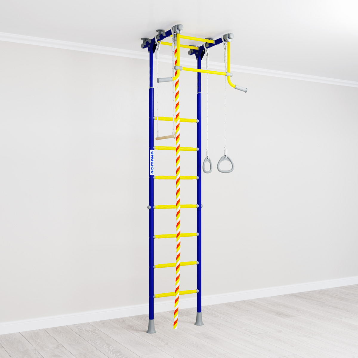 Детский спортивный комплекс ROMANA R2 — выбор для владельцев домов и квартир, которые не хотят сверлить стены для установки шведской стенки. Комплекс устанавливается враспор, что означает, что его можно переставлять в любую точку квартиры закрепив между полом и потолком. При этом допустимый вес — 100 кг (испытания проводятся при весе 200 кг).