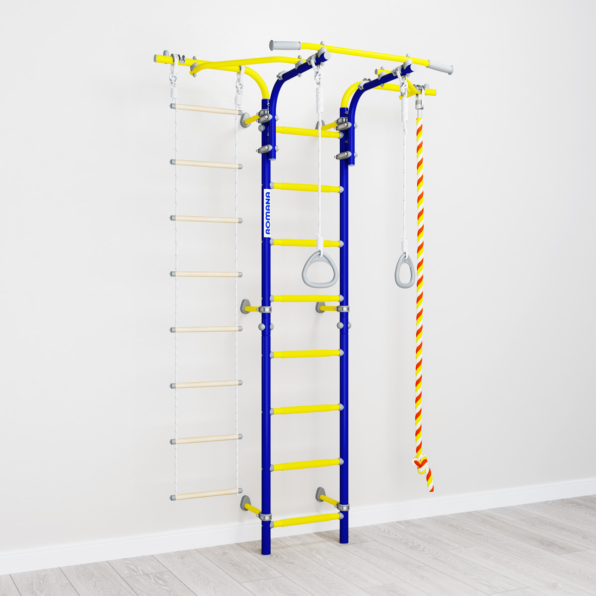 Детский спортивный комплекс ROMANA S6 Karusel — один из самых увлекательных комплексов для ребенка любого возраста с пристенным креплением. Взбираясь по веревочной лестнице, ребенок может ухватиться за перекладину,ведущую к турнику, с него переместиться на канат и затем спуститься вниз — эта мини игра так увлекательна для маленьких искателей приключений.