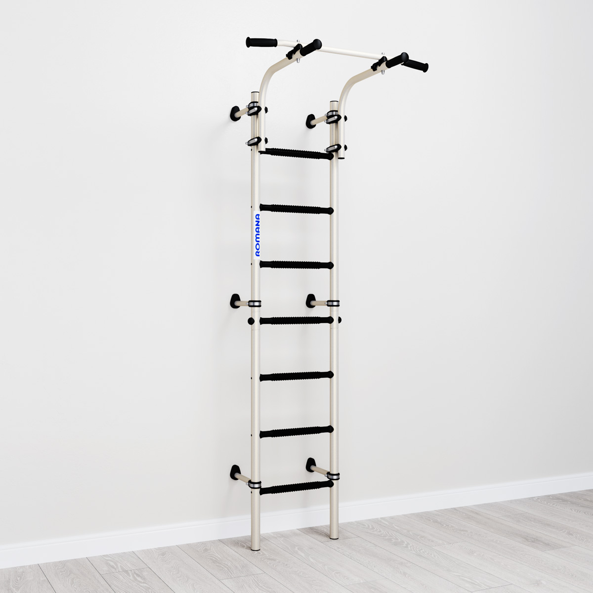 Спортивный комплекс ROMANA S9 — универсальное решение для квартиры или дома. Он устанавливается к стене. Обладает лаконичным дизайном, можно выбрать из двух расцветок — черный или черно-белый. В комплекте идет лестница и регулируемый по высоте турник. Его можно перемещать по вертикали, подстраивая под рост тренирующегося. Металлоконструкция комплекса выдерживает вес до 100 кг (испытывается при 200 кг). Хотите добавить откидные брусья, обратите внимание на комплекс ROMANA S10.