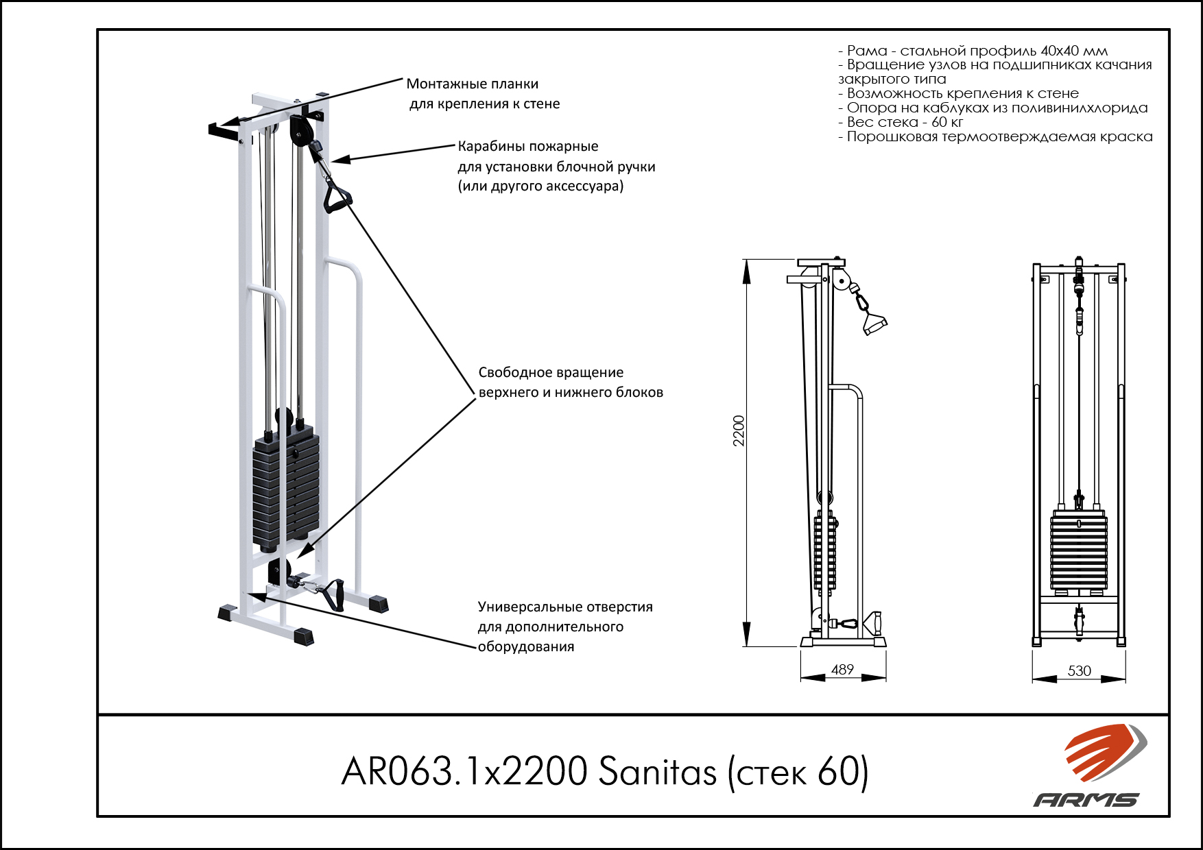 Шведская стенка может быть как самостоятельным тренажером, который обязательно нужно будет прикрепить к стене с помощью уголков, так и послужить дополнением к любой профессиональной и реабилитационной раме серии AR при высоте 2400мм.