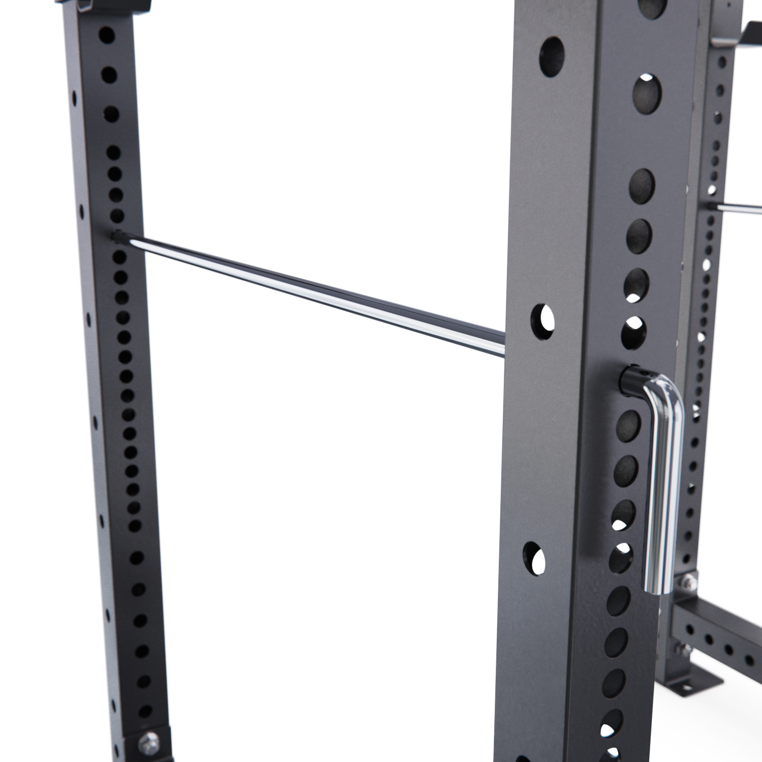 Рама имеет 19 уровней регулировки держателей под штангу, что делает её универсальной в использовании. Прочная стальная рама с профилем 75 х 75 х 3 мм обеспечивает высокую устойчивость и выдерживает нагрузку до 180 кг. Поверхность рамы покрыта специальным порошковым покрытием, устойчивым к царапинам и истиранию.