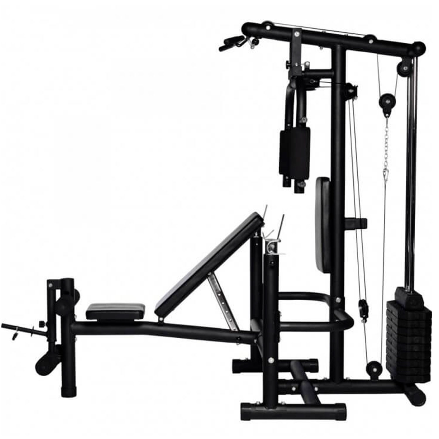 Многофункциональный силовой тренажер — это домашний тренажерный зал. Совмещает в себе два популярных типа: мультистанцию со встроенным весовым стеком и скамью со стойками под штангу и опциями. Позволяет выполнять широкий комплекс упражнений на различные группы мышц.