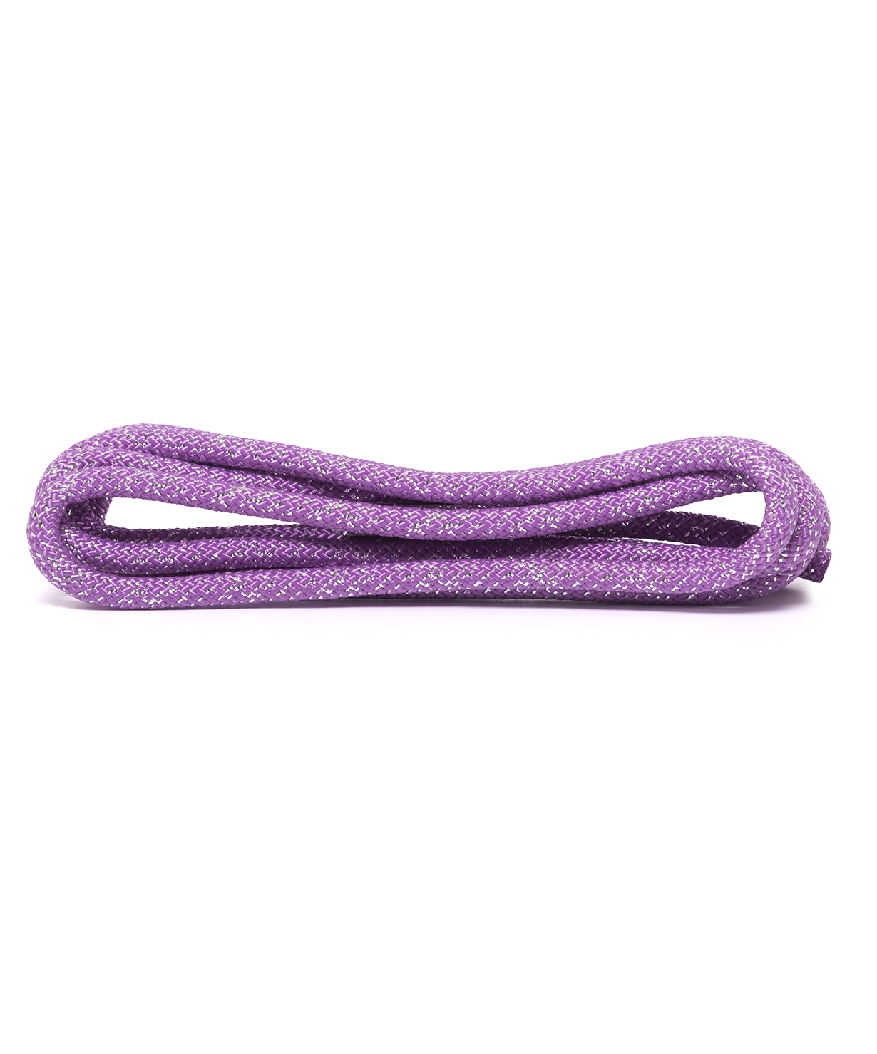 Скакалка для художественной гимнастики RGJ-304 изготовлена из качественного синтетического материала полиамида, очень прочная, износостойкая. Сохраняет эластичность и форму. В скакалку вплетена тонкая металлическая нить — люрекс, благодаря ей скакалка красиво блестит.