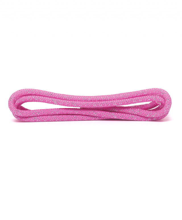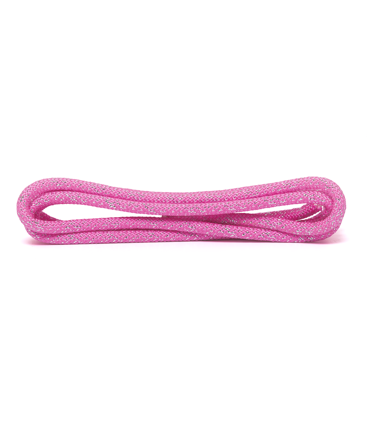 Скакалка для художественной гимнастики RGJ-304 изготовлена из качественного синтетического материала полиамида, очень прочная, износостойкая. Сохраняет эластичность и форму. В скакалку вплетена тонкая металлическая нить — люрекс, благодаря ей скакалка красиво блестит.