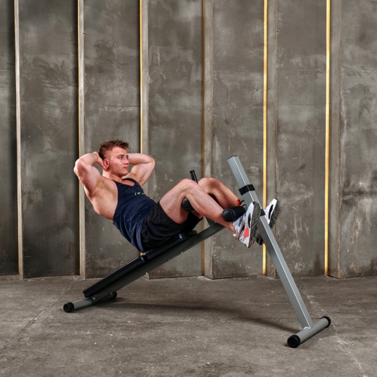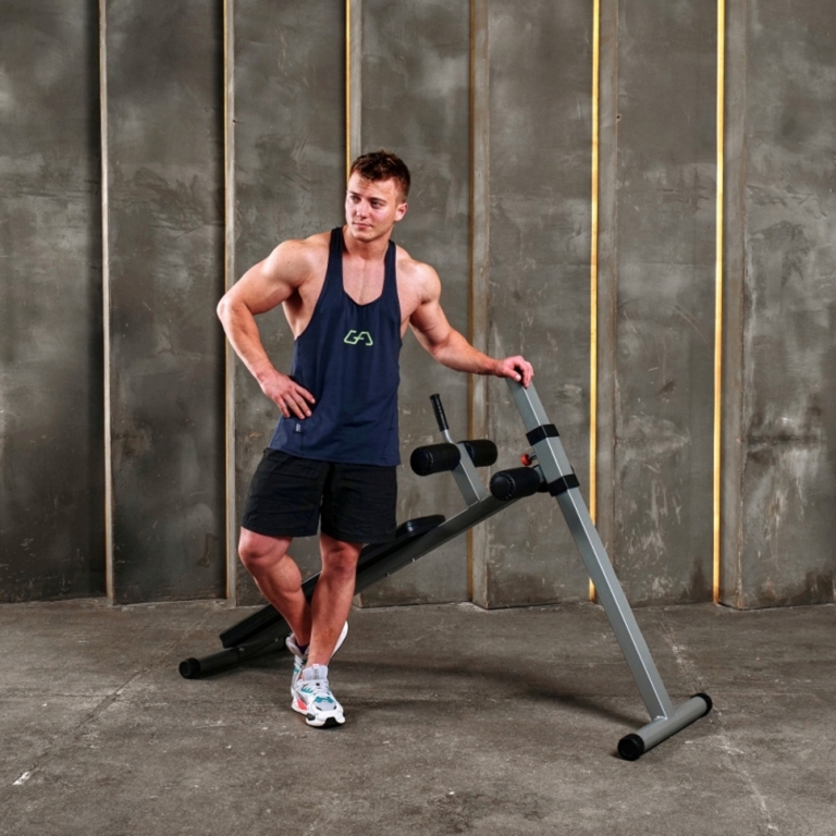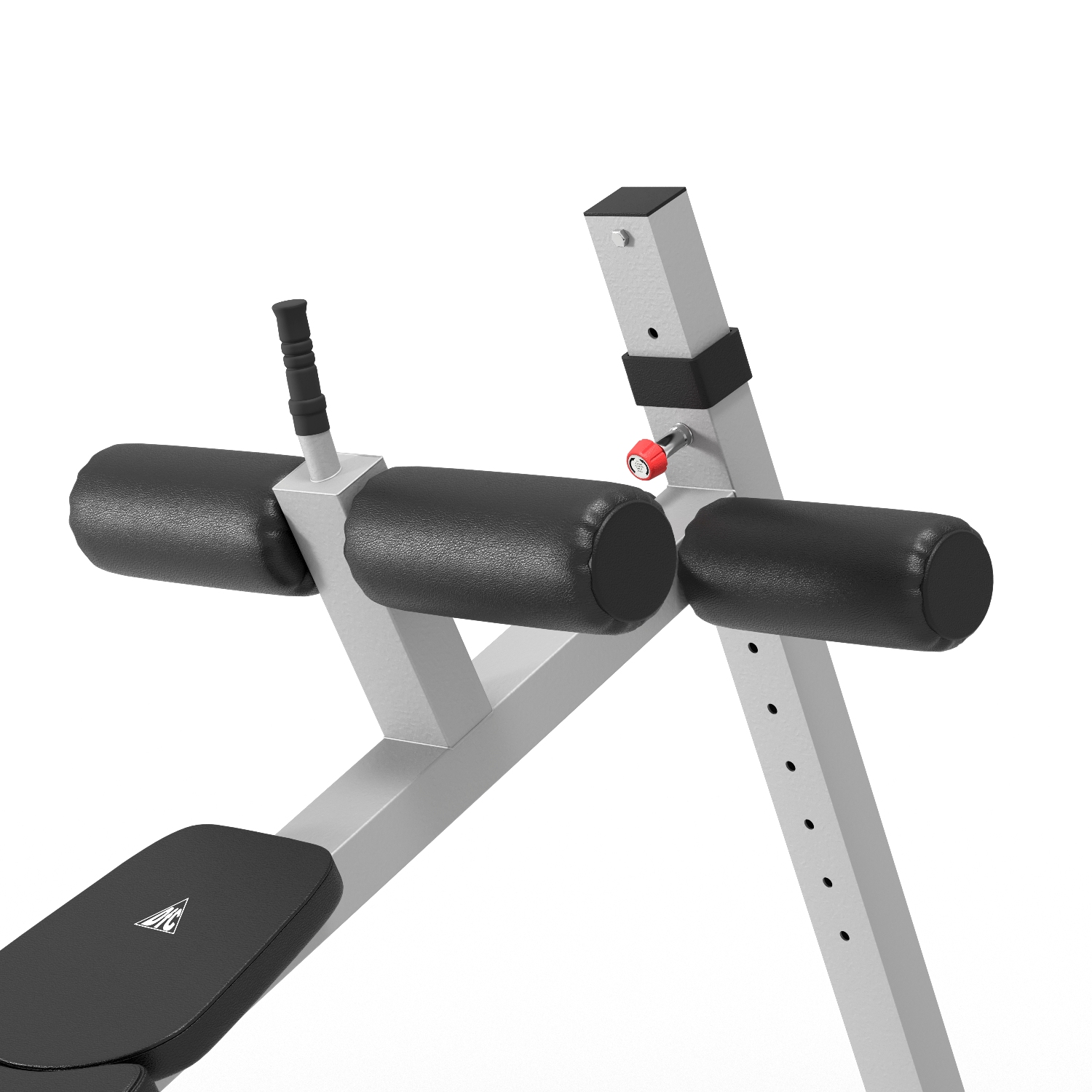 Особенностью данной скамьи является возможность регулировки угла наклона в 12 различных положениях, что позволяет увеличить или уменьшить интенсивность тренировки и проработать различные группы мышц. Размер подушки скамьи 106 х 26 см, а толщина 6 см.