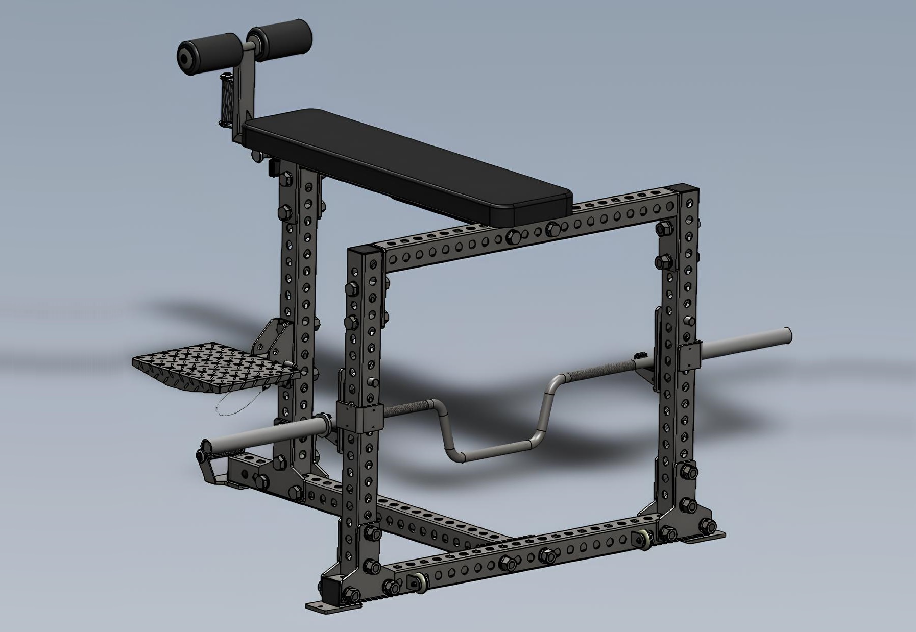 Для наибольшего тренировочного эффекта, мы рекомендуем приобрести специальный гриф для тяги лёжа, он не входит в комплект поставки, но вы можете найти его по ССЫЛКЕ.
