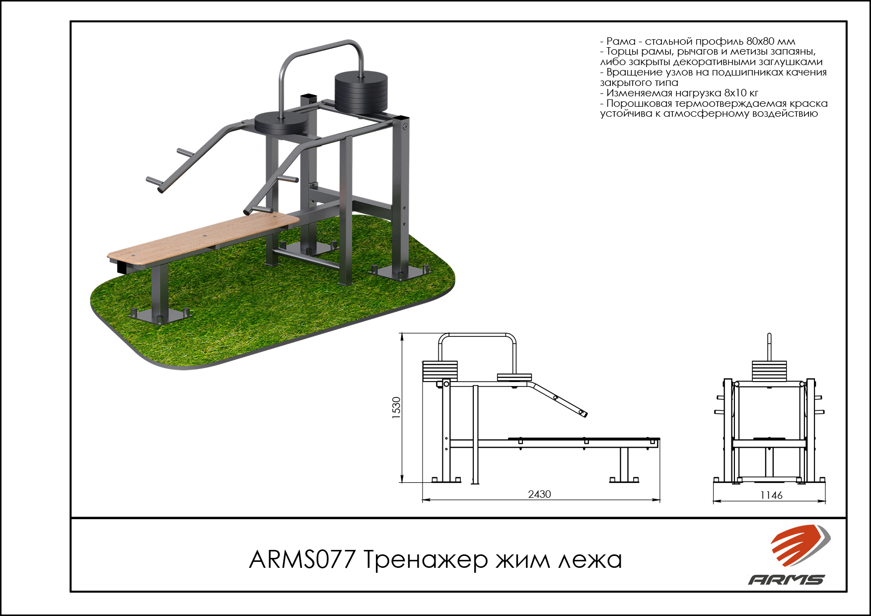 Force-2800 Уличный тренажер Жим лежа с переменной нагрузкой ZAVODSPORTA