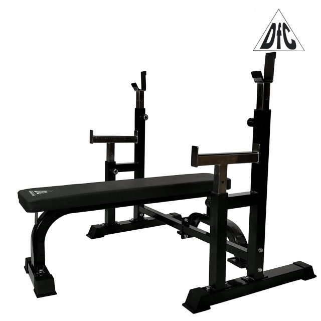 В комплекте поставляется прямая силовая скамья и силовая стойка для штанги.