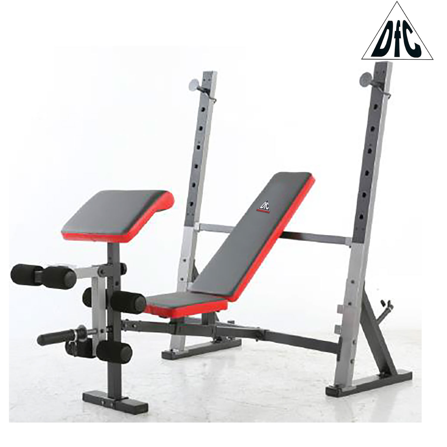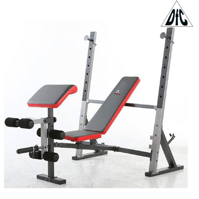 Скамья силовая со стойками под штангу и опциями. Предназначена для выполнения различных упражнений: