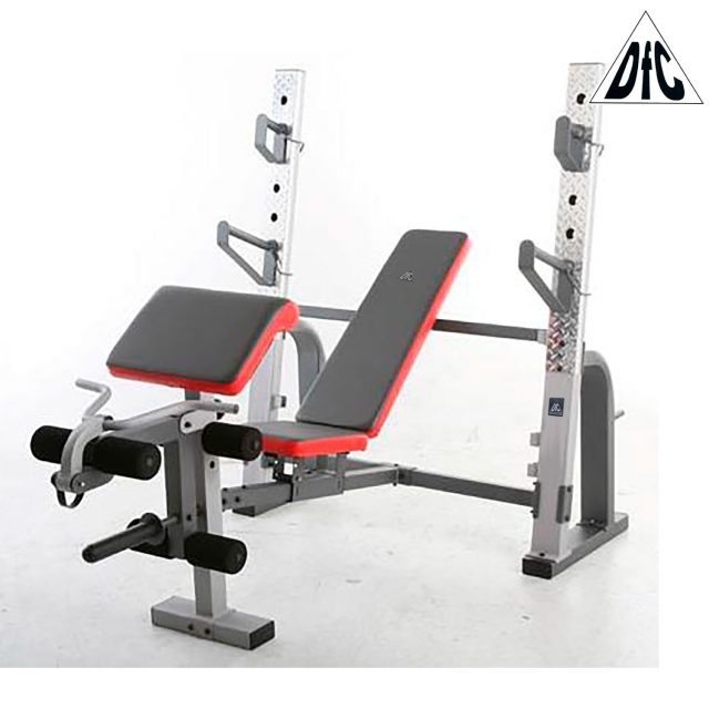 Скамья силовая со стойками под штангу и опциями. Предназначена для выполнения различных упражнений: