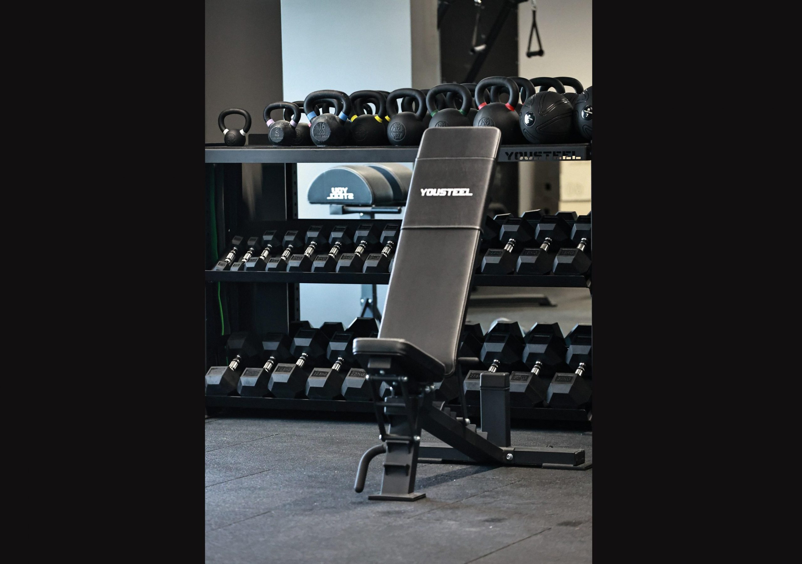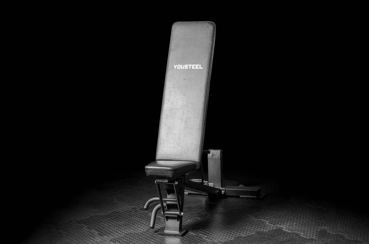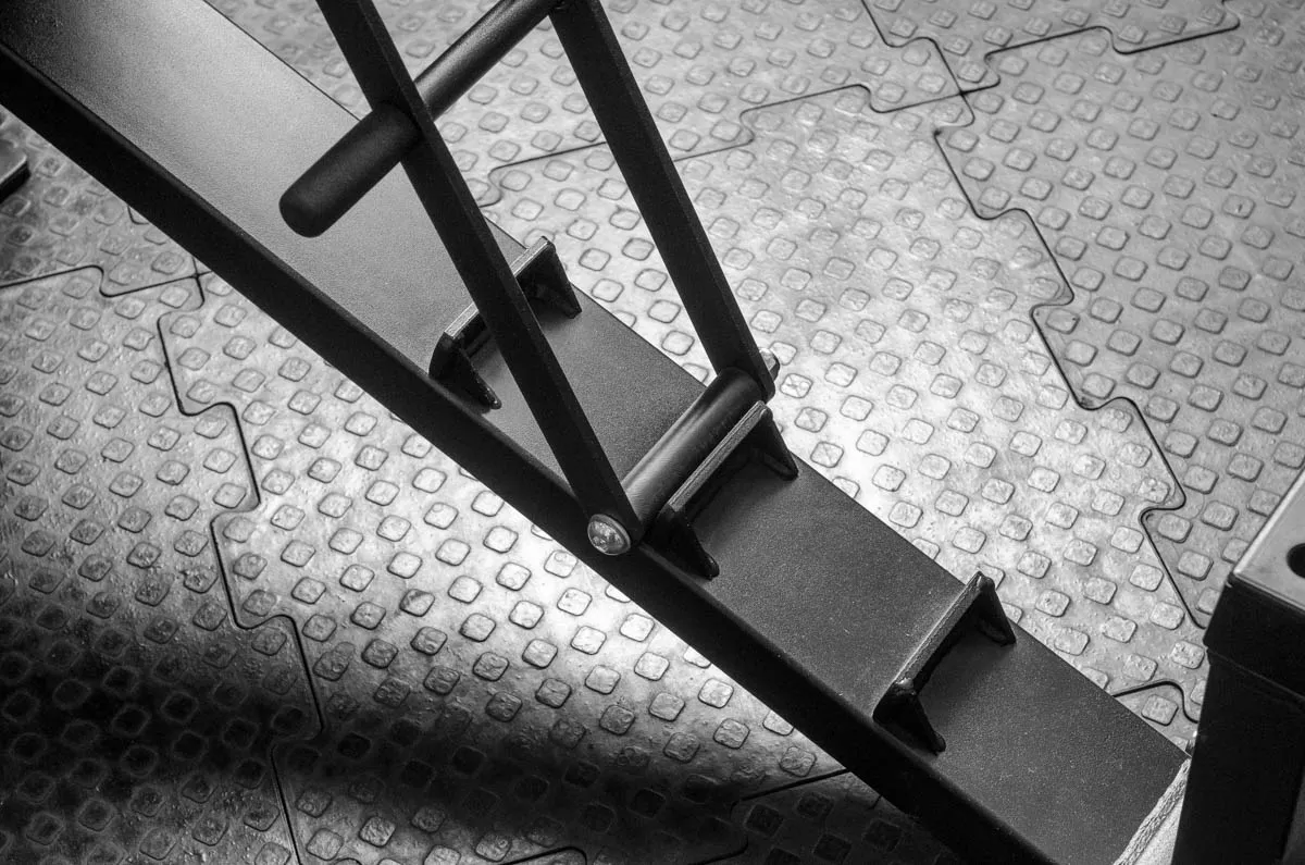 В основу ее конструкции мы положили ступенчатый механизм регулировки и прямоугольное цельное полотно спинки. Скамья состоит из 2 независимых подвижных частей. Каждая имеет 3 положения регулировки. Чтобы зафиксировать выбранный угол наклона, установите фиксатор на нужной ступеньке. Мягкие части обиты устойчивой к вытиранию антибактериальной эко кожей. Металл — порошковой краской. Основании скамьи Т образной формы не даст скамье перевернуться. Чтобы вам не таскать скамью, мы сделали колесики на широкой ножке и ручку на противоположной стороне — подняли и покатили.
