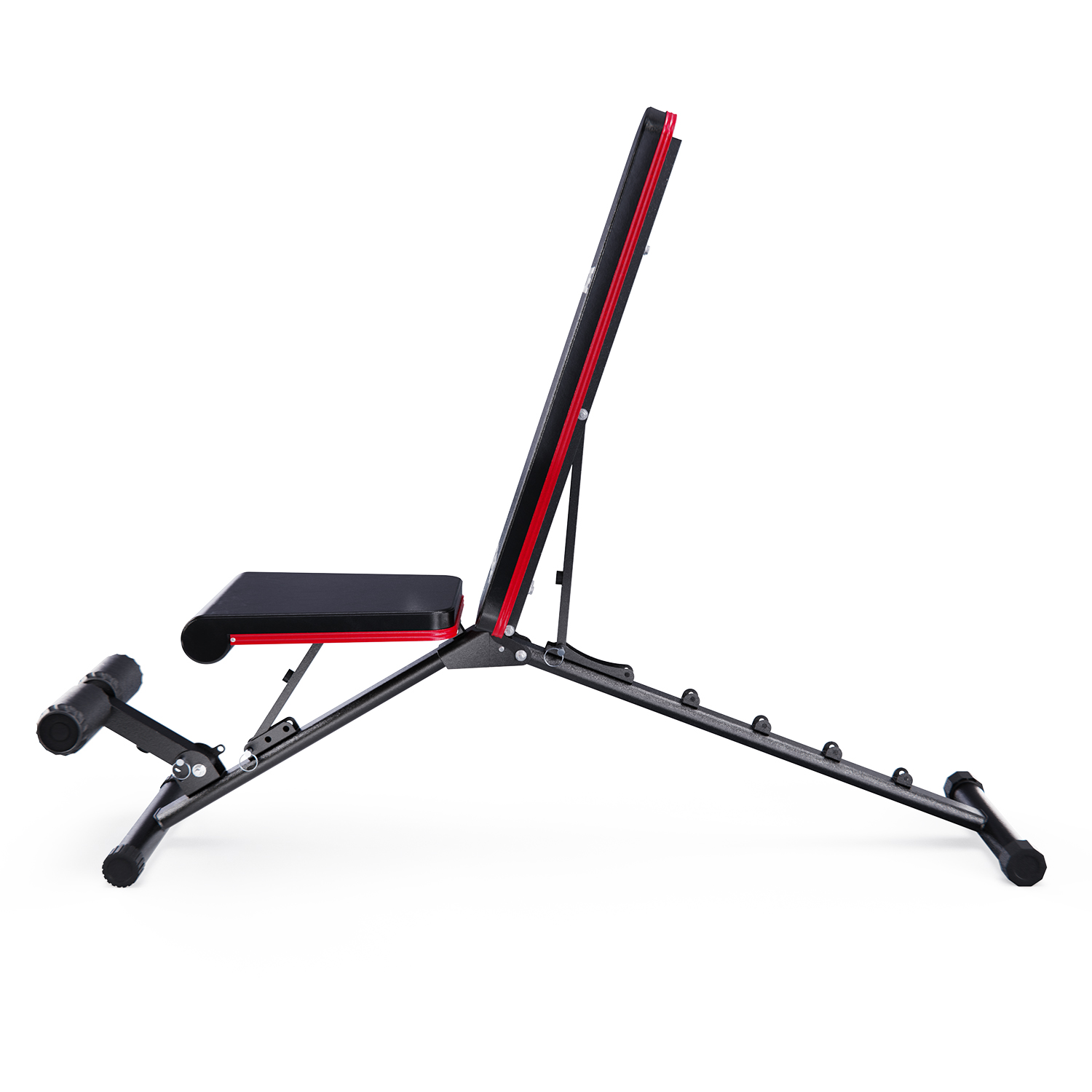 Скамья спортивная имеет регулируемую спинку, которая фиксируется в 6 различных положениях, позволяя вам подбирать нужный угол наклона. Это дает возможность выполнять как жим лежа, так и обратный жим, адаптируя скамью под ваши индивидуальные нужды. Сиденье имеет 3 уровня регулировки, что обеспечивает оптимальный комфорт и поддержку для каждого пользователя. Высота от сиденья до пола равна 41 см. Валики для ног из мягкого вспененного материала также имеют 3 уровня регулировки, что помогает зафиксировать ноги и избежать скольжения во время выполнения упражнений.