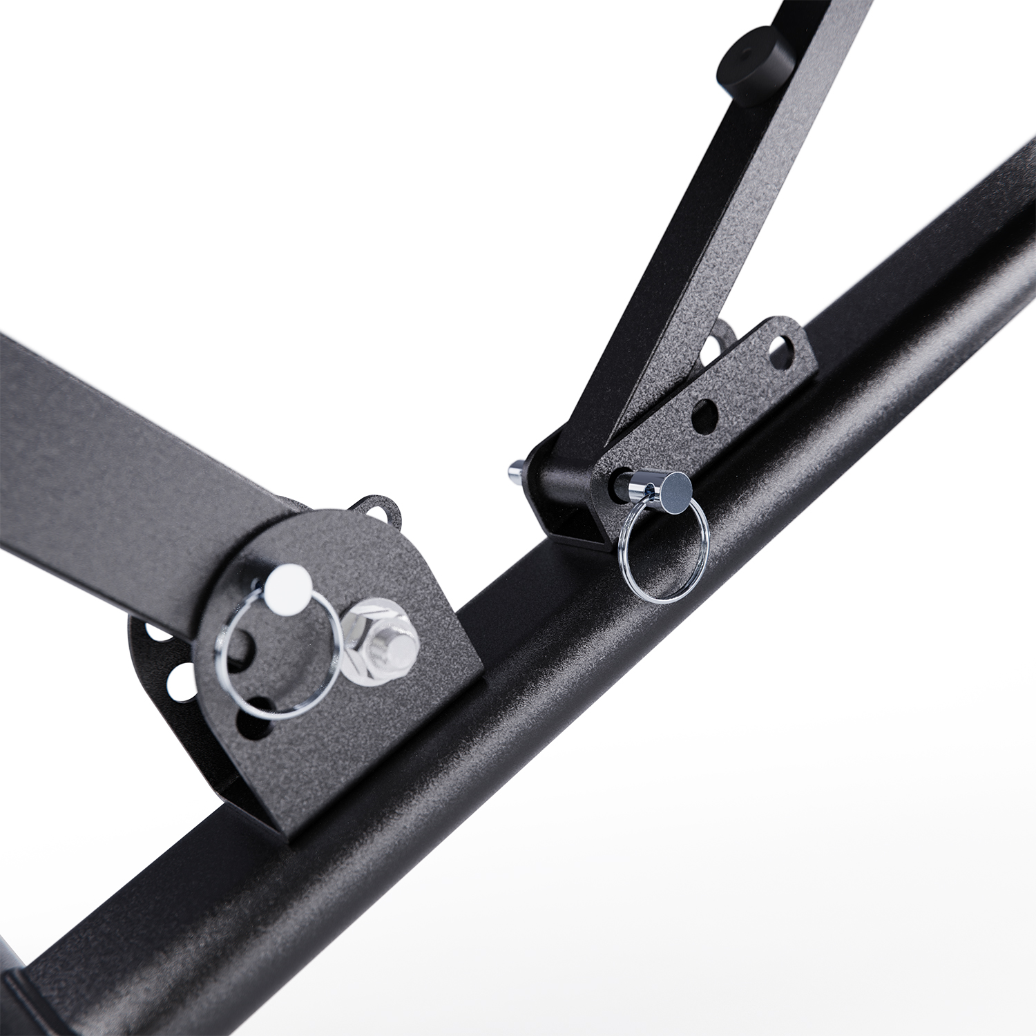 Скамья для жима лежа способна выдерживать максимальный вес пользователя до 160 кг, что делает её надежным и безопасным выбором для тренировок. Профиль рамы размером 30 х 70 х 1,5 мм и компенсаторы неровности пола гарантируют, что скамья будет оставаться стабильной даже при максимальных нагрузках.