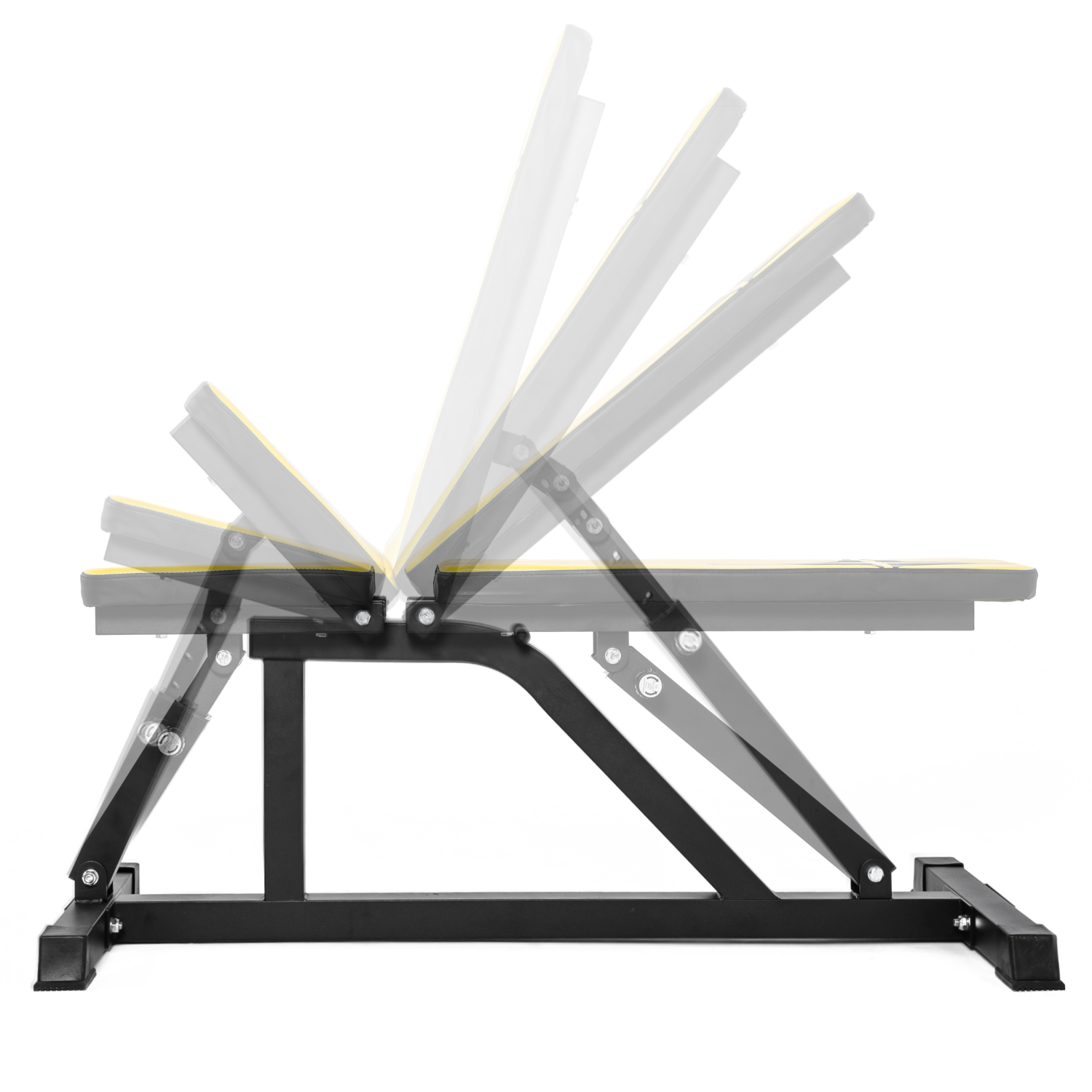 Сиденье и спинка скамьи регулируется по углу наклона в широком диапазоне. Фиксация в нужном положении с помощью удобной подпружиненной ручки.