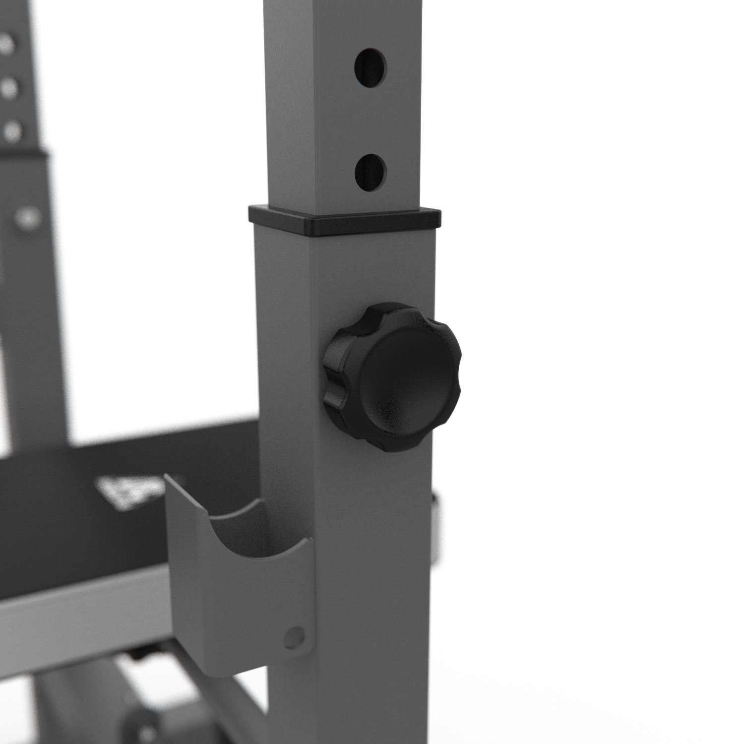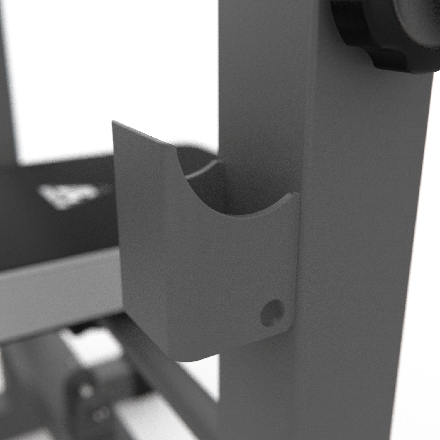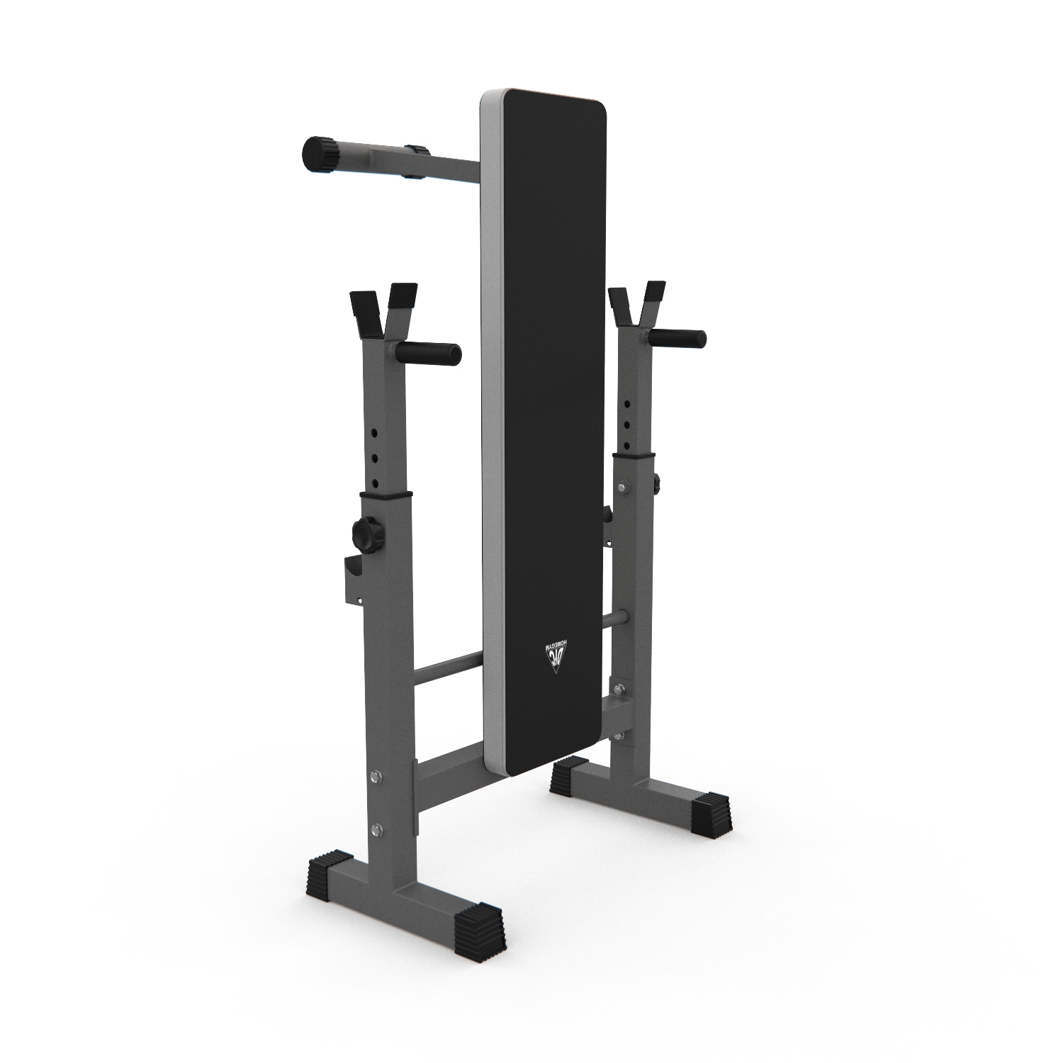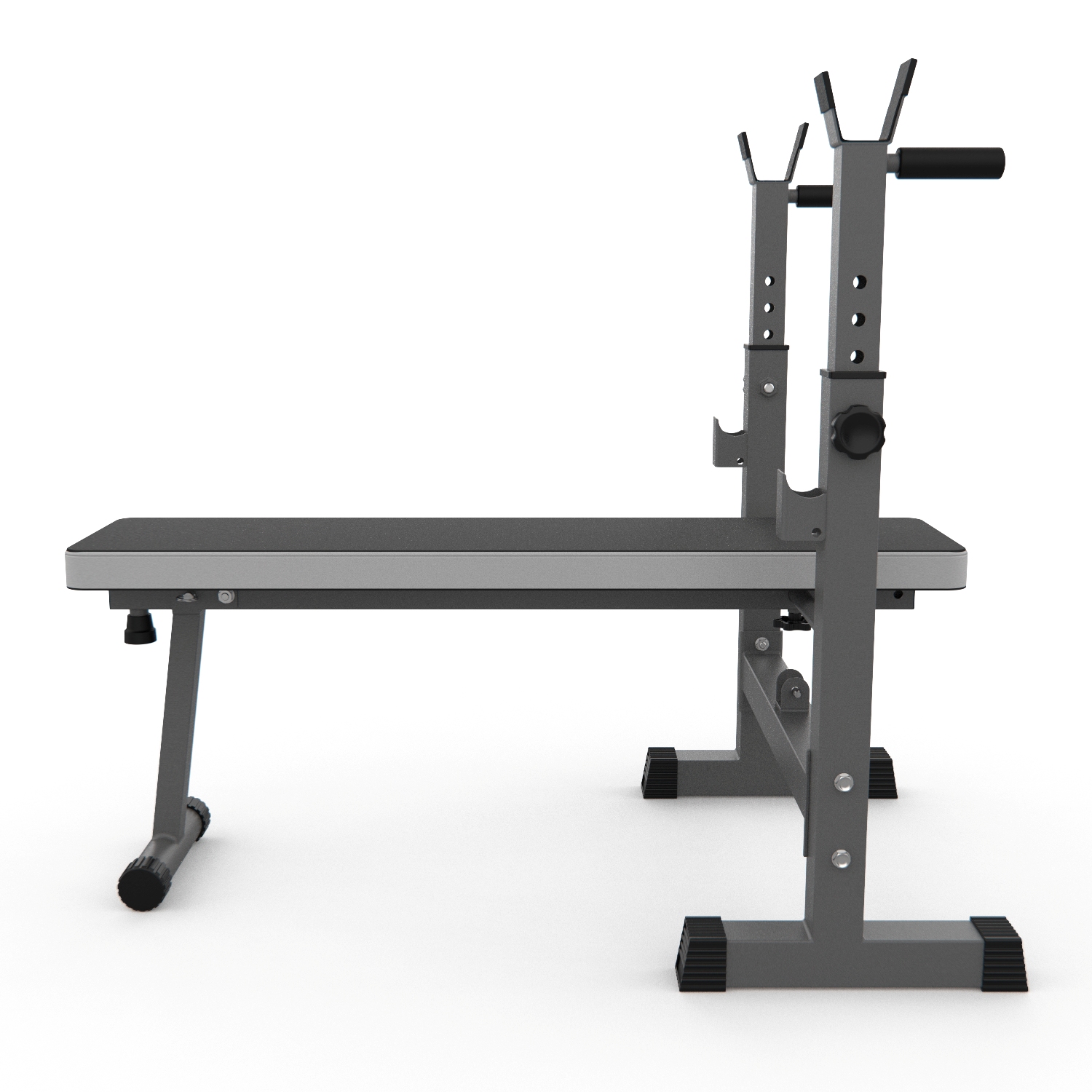 Стойки регулируются по высоте на 6 уровней от 79,5 до 97 см, что позволяет использовать скамью для людей разного роста. Высота от пола до скамьи составляет 44 см, длина опорных ножек стойки — 34,5 см, расстояние от задних до передних ножек стойки – 105 см.