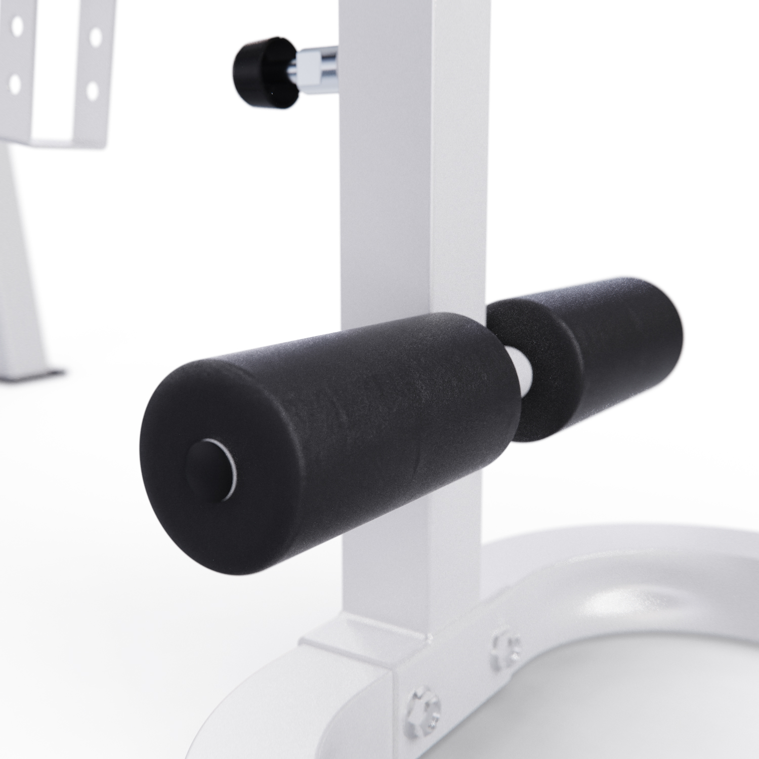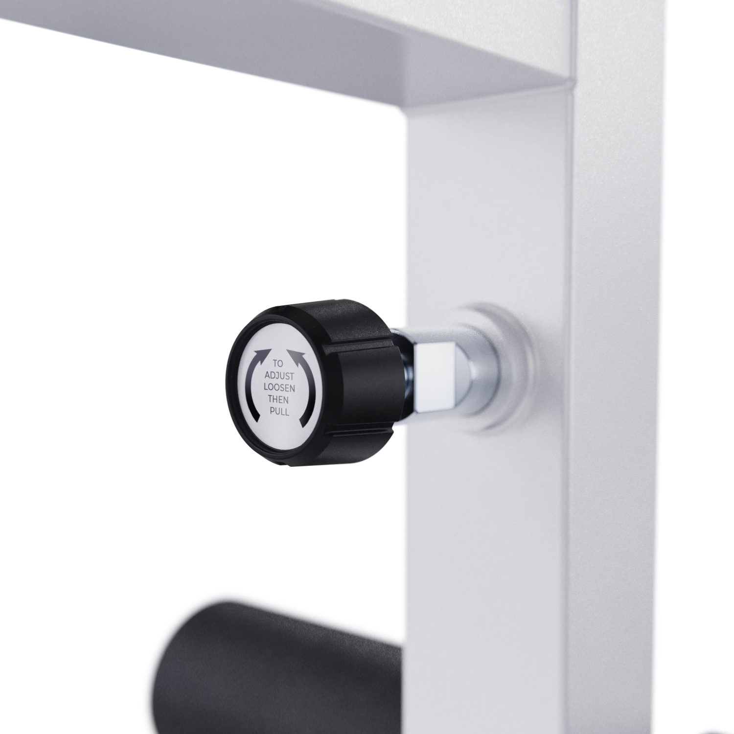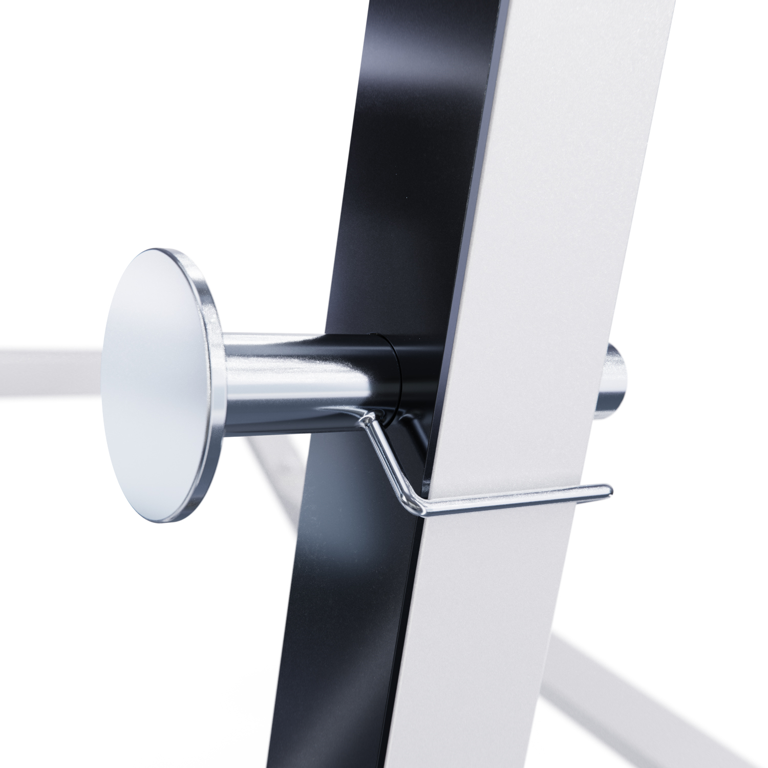 Высота держателей под штангу регулируется на 6 уровней от 46,5 до 138,5 см, что обеспечивает комфорт во время выполнения упражнений и позволяет настроить тренажер под себя.