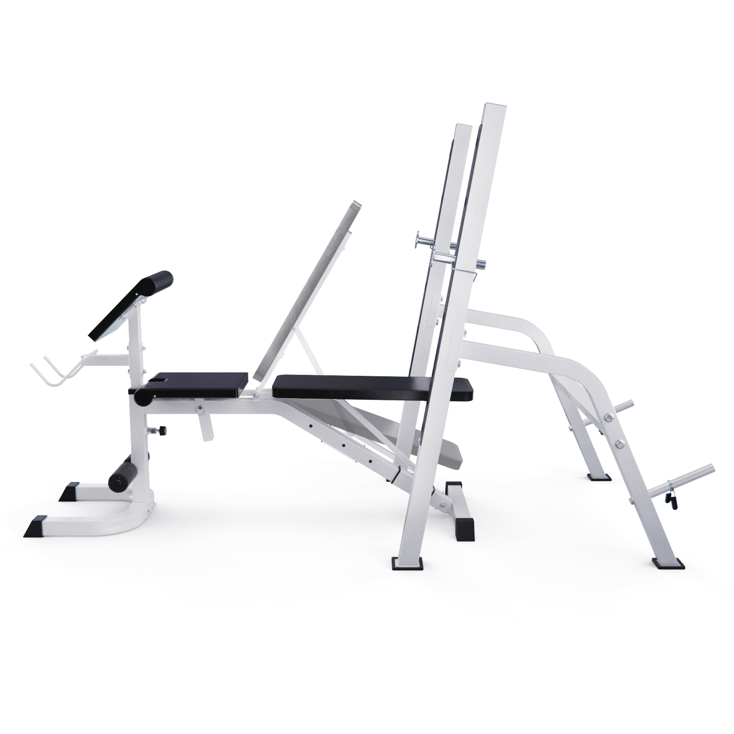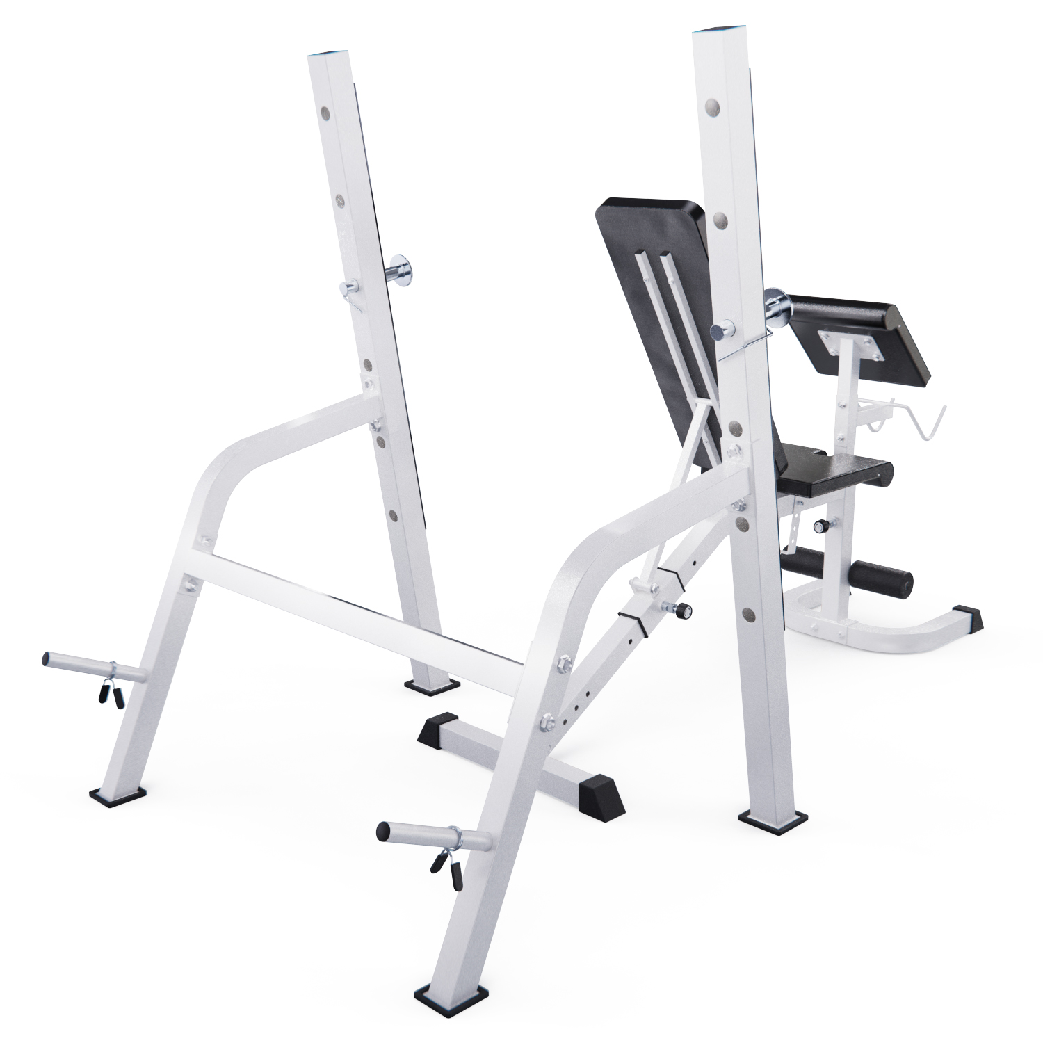 Скамья со стойками под штангу DFC GORILLA белая, с партой для бицепса