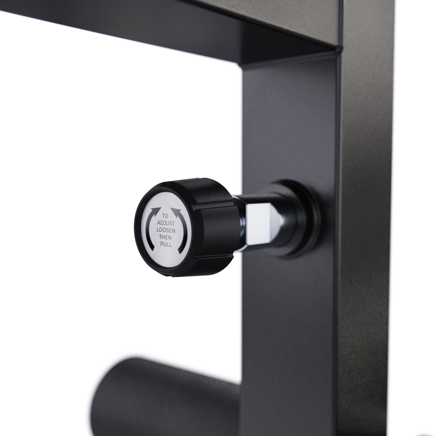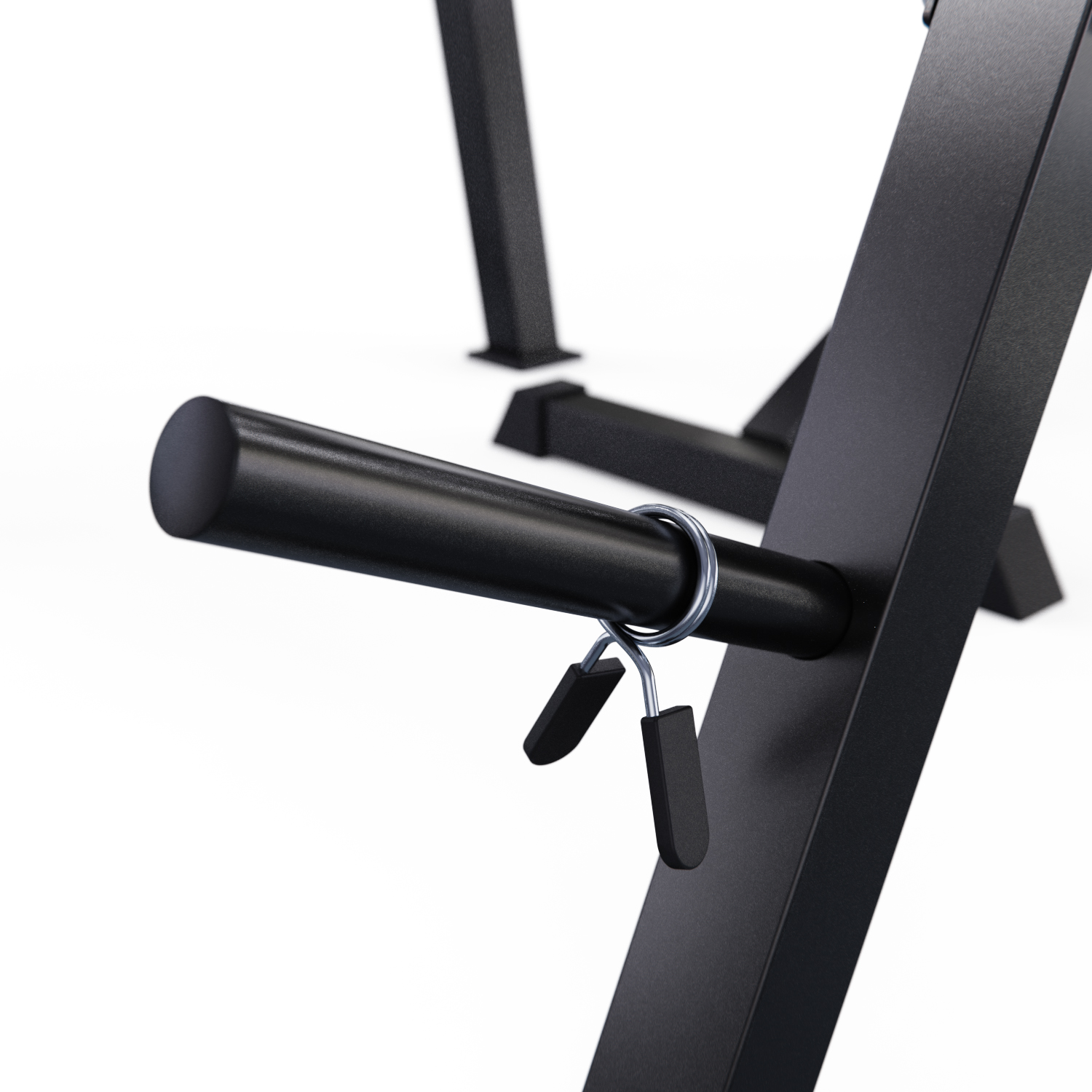 Высота держателей под штангу регулируется на 6 уровней от 46,5 до 138,5 см, что обеспечивает комфорт во время выполнения упражнений и позволяет настроить тренажер под себя.
