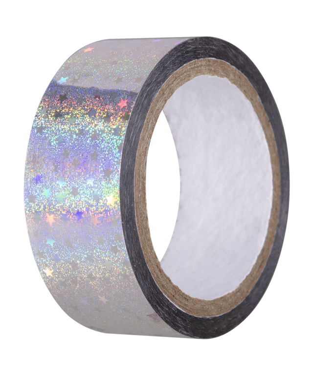 Блестящая лента с клейкой стороной намотана на картонное основание, поэтому удобна в использовании. Выполнена в нежной цветовой гамме с голограммным эффектом. Ширина скотч-ленты для обруча AGS-301 составляет 2 см, длина — 15 метров. Этого метража хватит, чтобы обмотать обруч даже самого большого диаметра.