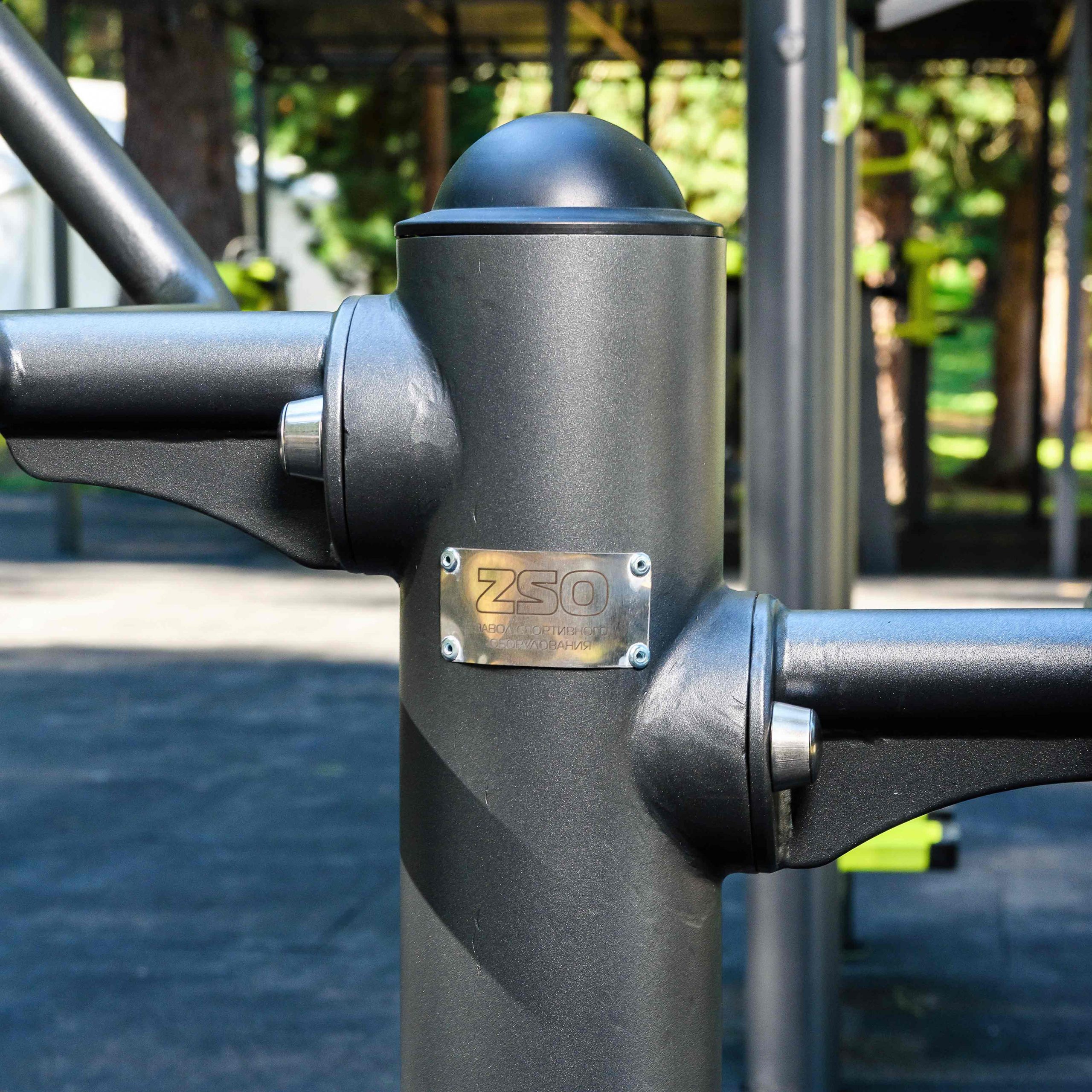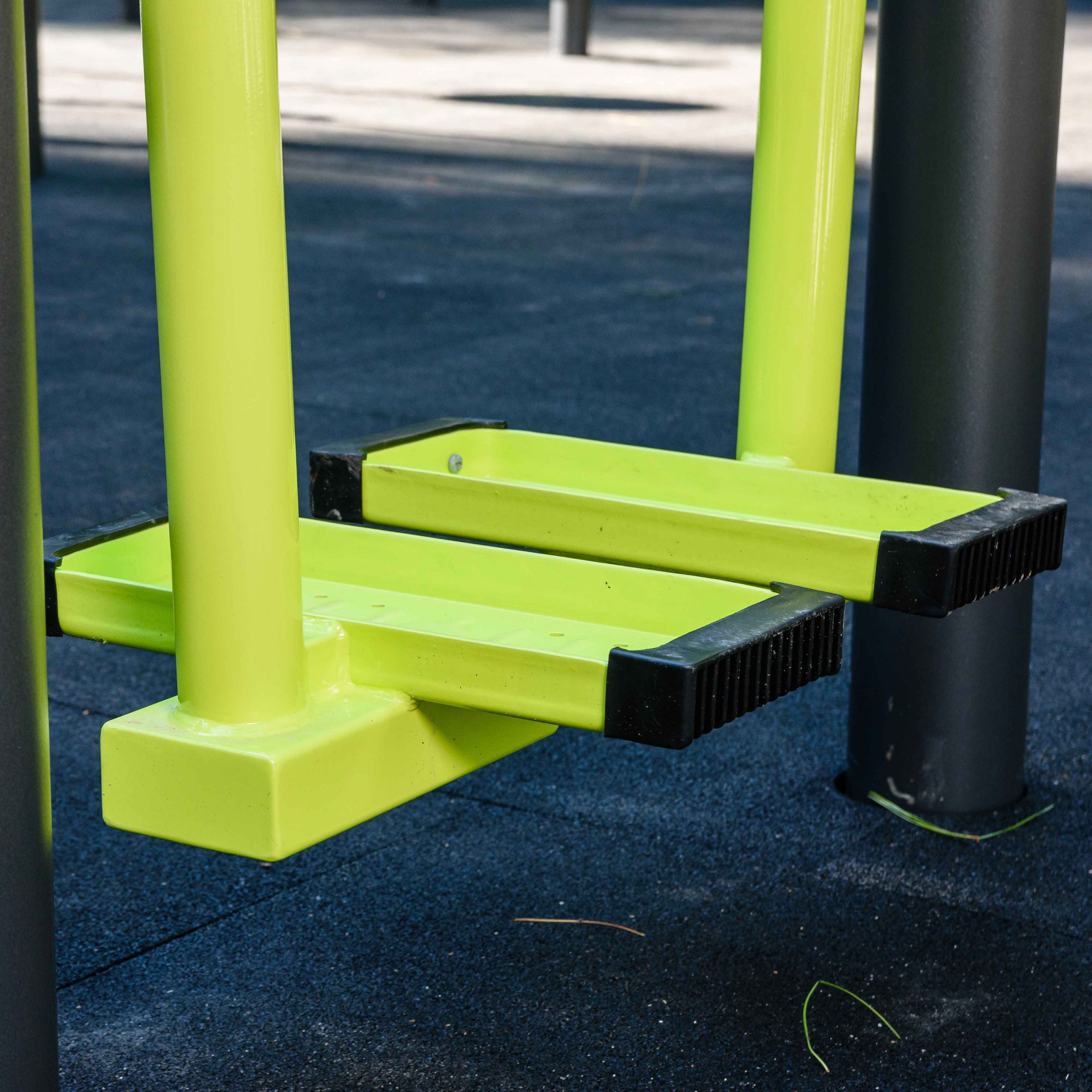 Оборудование состоит из опорных столбов, рычагов с опорными площадками под стопы, рукоятей и закладных. Закладные монтируются в грунт и заливаются бетоном. Опорные столбы крепятся к закладным за счет фланцевого соединения и отсыпаются песчано-гравийной смесью до уровня площадки. Фланцевое крепление позволяет надёжно смонтировать оборудование и беспрепятственно демонтировать при необходимости обслуживания. Монтажные схемы прилагаются к комплекту поставки.