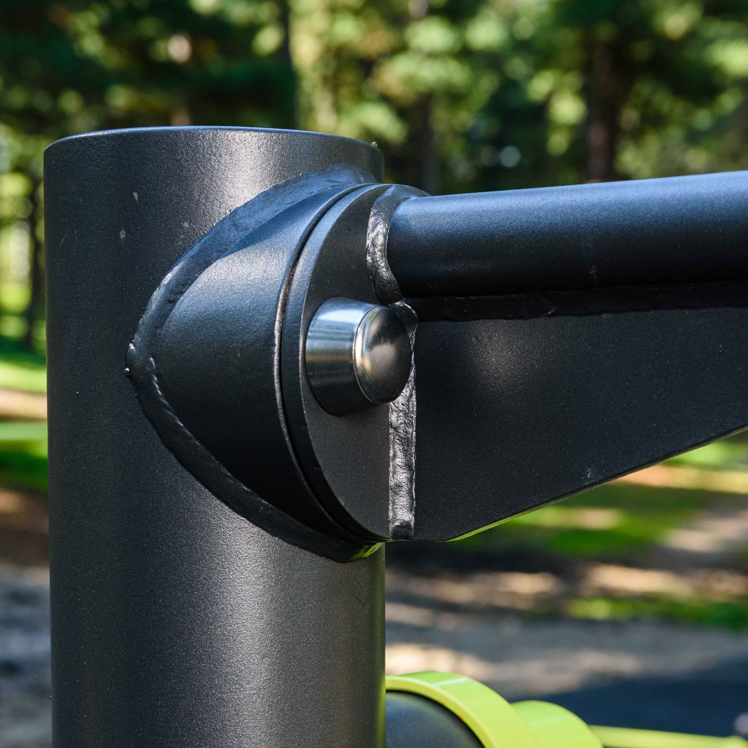 Подвижные рычаги изготовлены из стальной трубы диаметром 57 мм с толщиной стенки 3 мм с основанием для крепления опорных площадок для стоп из профильной трубы 100×50 с толщиной стенки 3 мм.