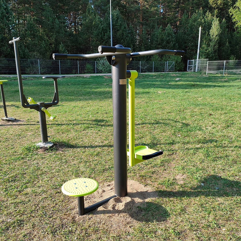 Сдвоенный тренажер оснащен двумя рукоятями, выполненными из стальной трубы диаметром 33 мм с толщиной стенки 3,2 мм.