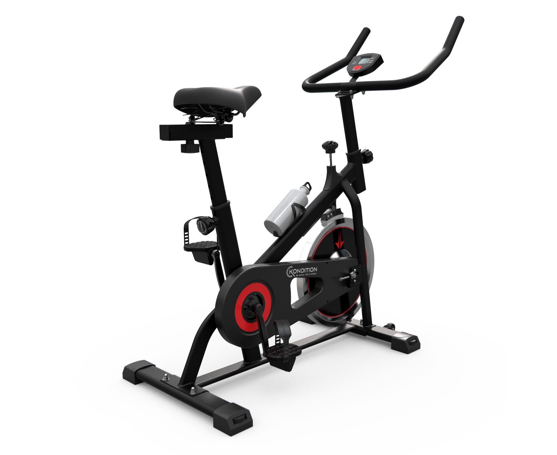 Система нагрузки у спин-байка Kondition колодочная. Маховик весом 19 кг обеспечивает плавное и равномерное распределение нагрузки на мышцы. Регулировка нагрузки механическая, что позволяет настроить ее под свои потребности. Максимальный вес пользователя — 110кг.