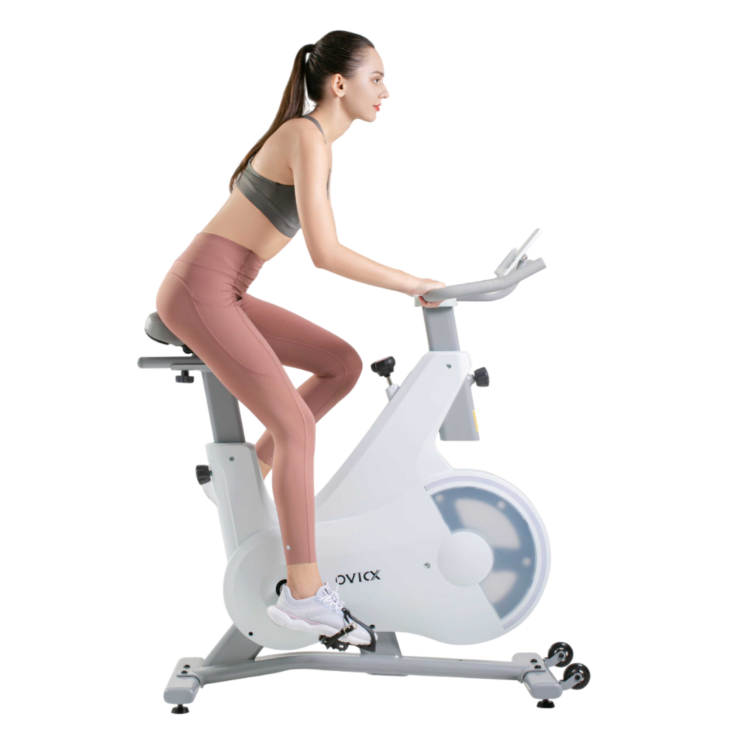 Велотренажёр выдерживает вес до 150 кг и подходит для пользователей ростом от 150 до 190 см. Инерционный вес маховика 15 кг гарантирует плавное движение и настройку степени нагрузки. Обернутый вокруг маховика ремень обеспечивает минимальный уровень шума, что делает тренажер кардио оптимальным вариантом для использования дома. Для того, чтобы разнообразить свои тренировки, подключайтесь к приложению OVICX APP.